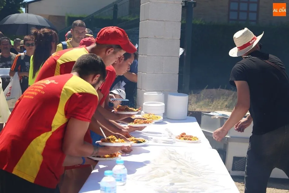 Los vecinos de Carbajosa apuran las últimas horas de las fiestas de San Roque y al mediodía se han reunido en el Prado de la Vega para degustar la gran paella solidaria que este año ha recuperado el Ayuntamiento a petición popular.