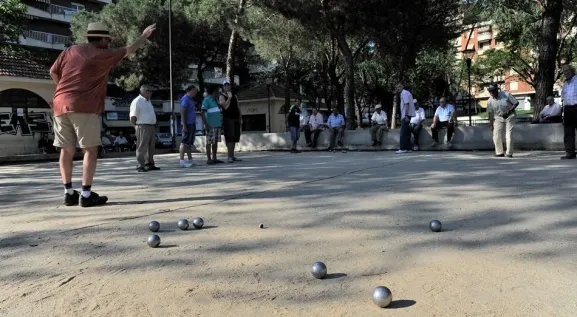 jugadores de petanca en el parque picasso