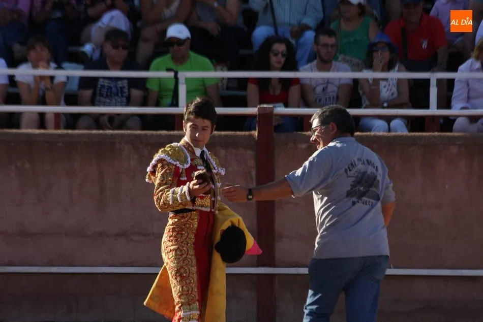 Valentín Hoyos estuvo valiente y entregado, demostrando que quiere ser torero. A su primero, segundo de la tarde, lo recibió con dos largas cambiadas, y con la muleta mostró tener recursos para salir airoso de una faena en la que el novillo blandeó en exceso y le obligó a llevar la muleta a media altura. Incluso de haber fallado con los aceros hubiera podido tocar pelo. Silencio para el novillero. En su segundo, que cerraba plaza, estuvo más acoplado. Comenzó la faena de muleta de rodillas y entendió rápido que debía ir sin prisas y de uno en uno, logrando alguna serie de mérito con la mano izquierda. Pero la espada le volvió a pasar factura, también el estoque de cruceta. Silencio para el albercano.