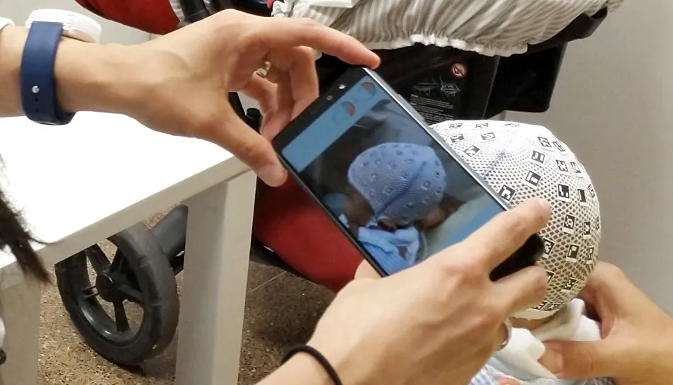 "El gorro incorpora una serie de dianas codificadas y la app lo que hace es registrar la imagen grabada de cada una de esas dianas y guardar sus coordenadas. Posteriormente procesa todos los datos y genera la imagen 3D del cráneo del bebé", apunta Inés Barbero García, investigadora también del grupo GIFLE-UPV.
