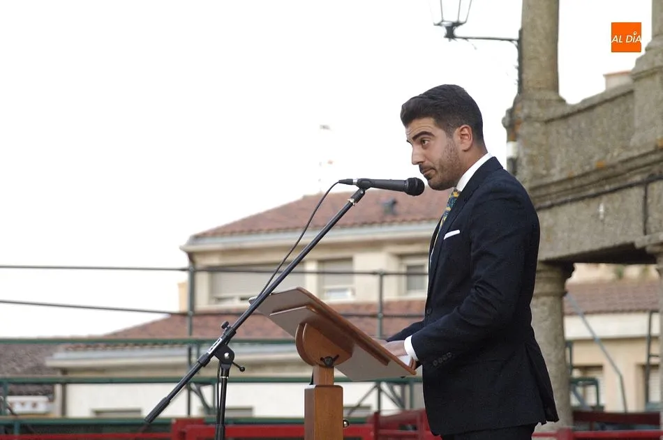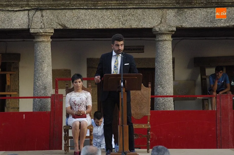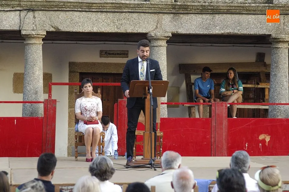 El pregonero llegó hasta la Plaza de la Constitución (donde se había montado un escenario para el pregón) acompañado de la Corporación, encabezada por la alcaldesa Lourdes Palos, y de unos charros. La propia alcaldesa fue la encargada de presentar al pregonero, quién tras mencionar brevemente los partidos de fútbol jugados en la localidad junto a su hermano (?hemos jugado en muchos campos, pero en ninguno hemos sentido la misma emoción?), quiso hacer una oda a los ambientes y sensaciones rurales, a través del Poema de un día. Meditaciones rurales de Antonio Machado.