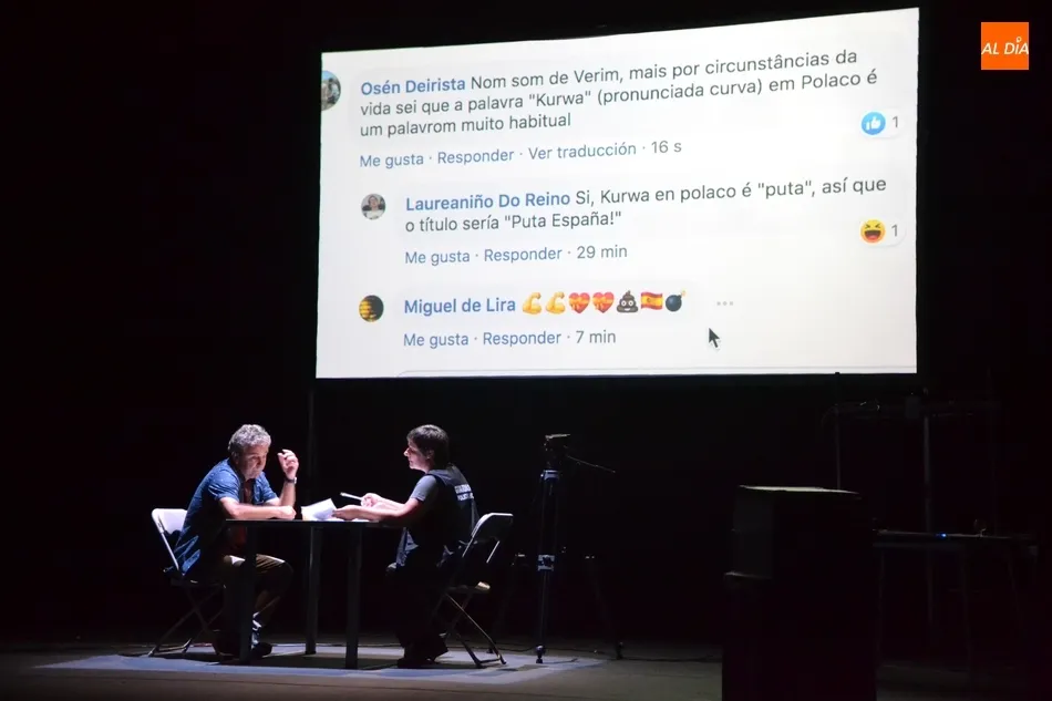 Durante la tarde-noche del miércoles de Feria solo hubo un estreno: la primera representación en castellano de Curva España, un montaje de la compañía gallega Chévere, en el que da a conocer una historia que se ha ido transmitiendo de generación en generación en la comarca orensana de Verín durante casi 100 años.