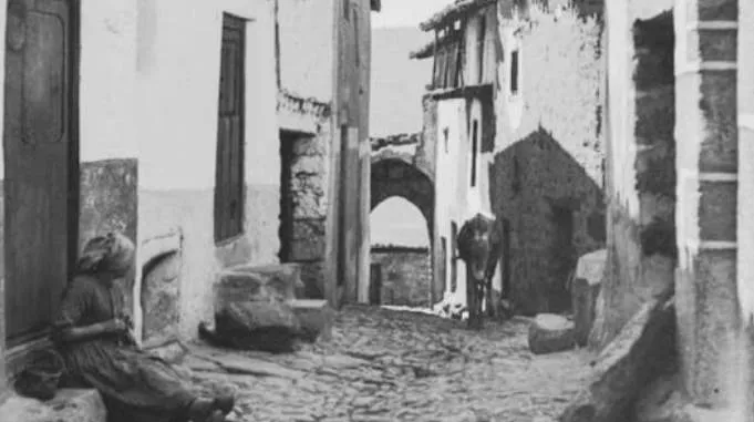 - Una calle con arco al fondo. Entre 1930 y 1936.