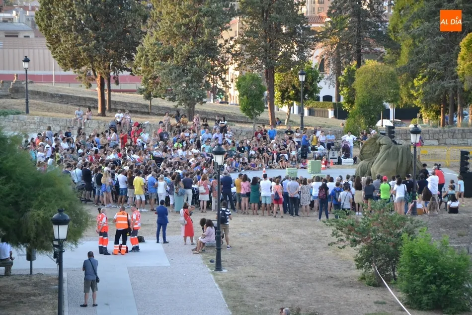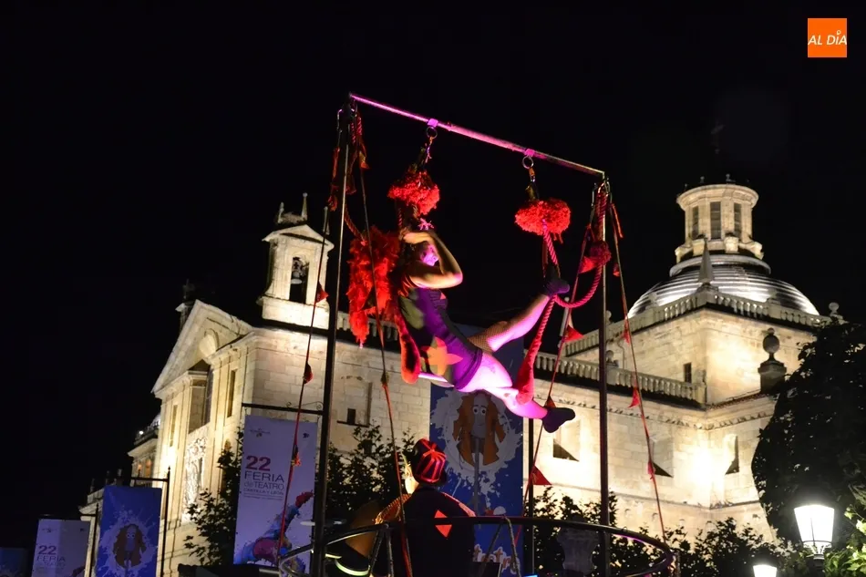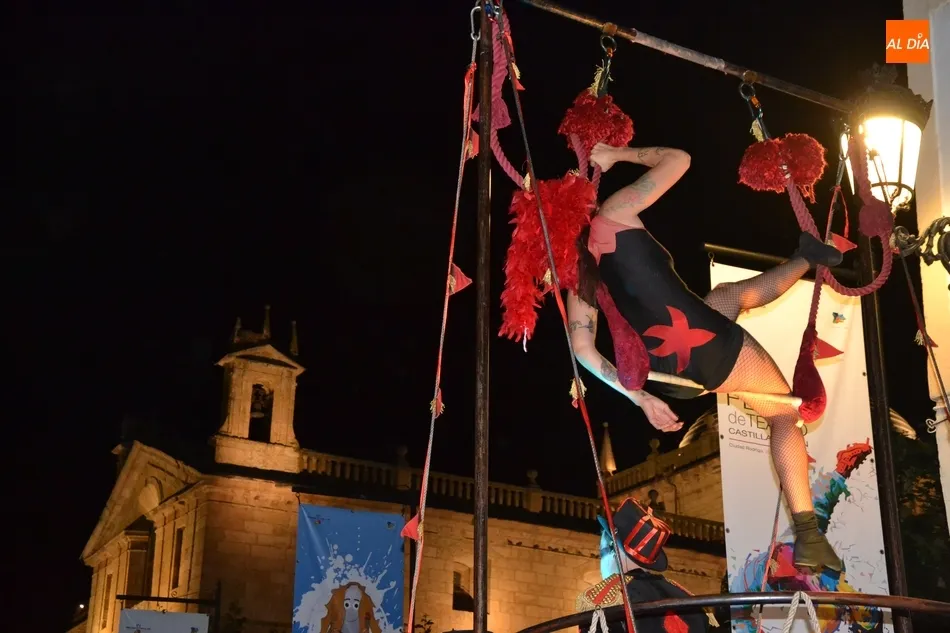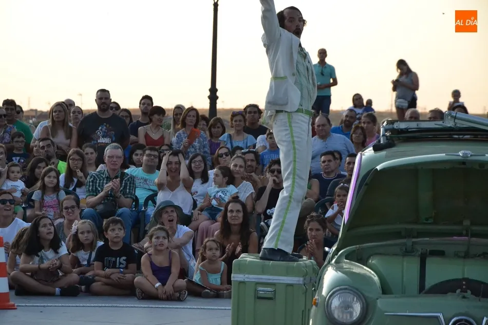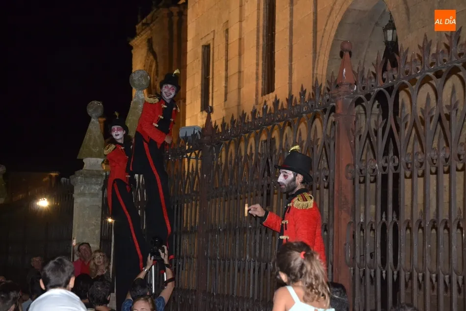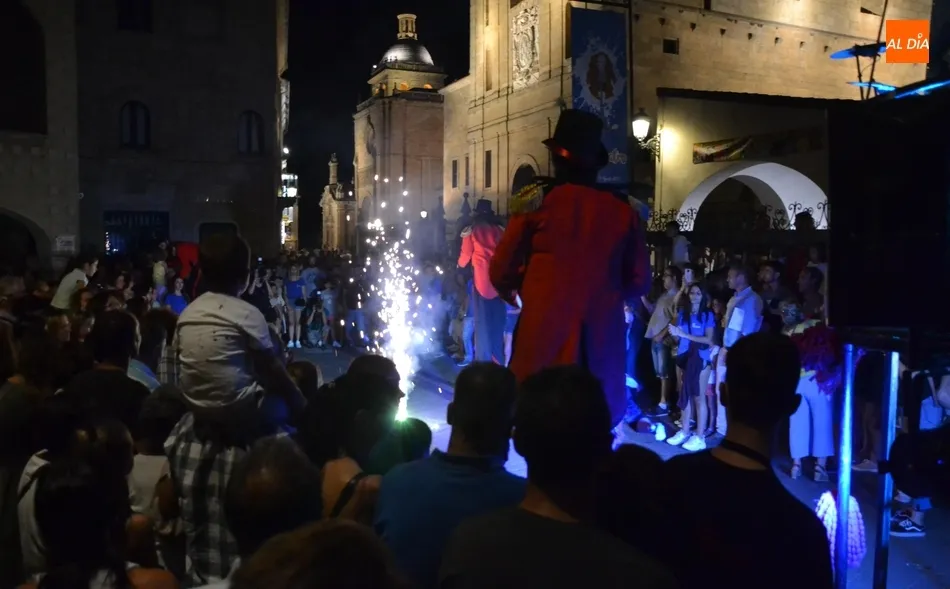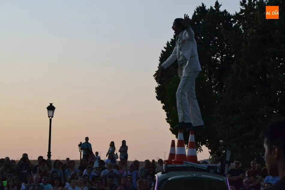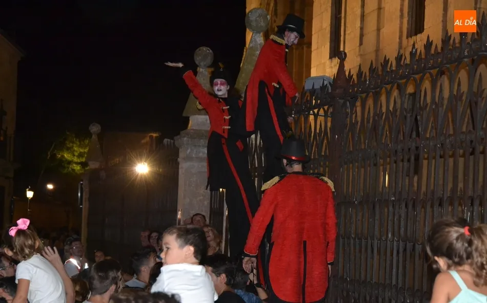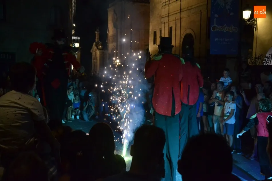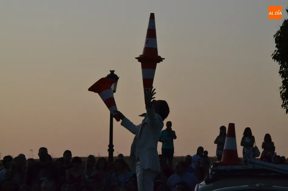 El espectáculo duró una hora, lo que hizo que parte del público asistente se fuera directamente ya a coger sitio para disfrutar del segundo pase del Klez 80 Circus de la compañía La Troupe Malabó. En esta versión nocturna, el pasacalles se puso en marcha en la zona de La Batería, yendo por Sánchez Arjona hasta la Plaza Mayor, donde estuvieron unos minutos antes de continuar por Julián Sánchez y concluir en la Plazuela de Herrasti.