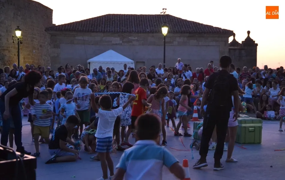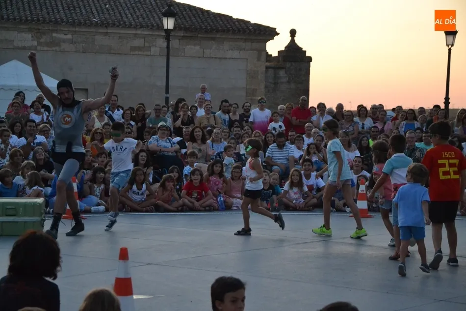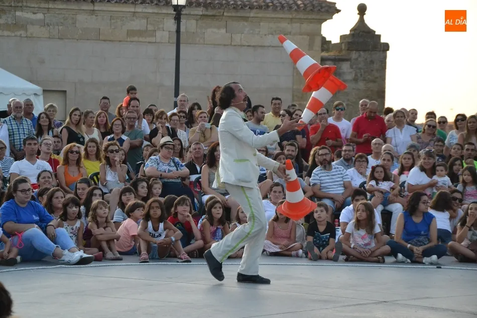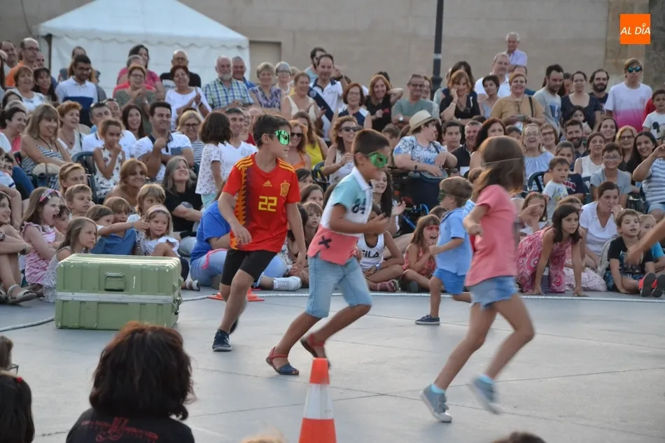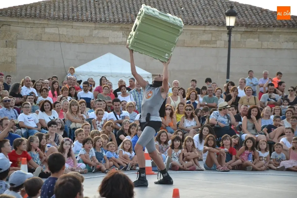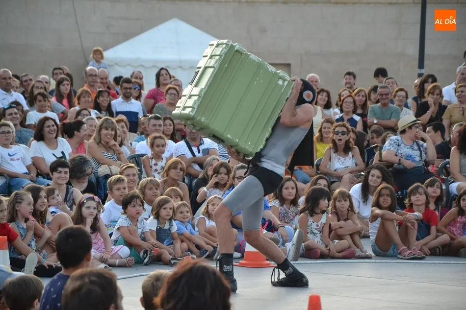 Durante este nuevo pasacalles, los mozos de Klez 80 Circus repitieron algunos de los momentos de espectáculo de la mañana, como coger a niños del público, o permitirles pasar entre sus piernas, pero también hubo algunas novedades, como pequeños fuegos de artificio.