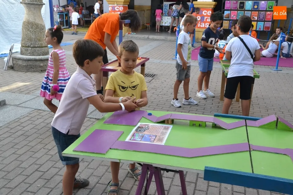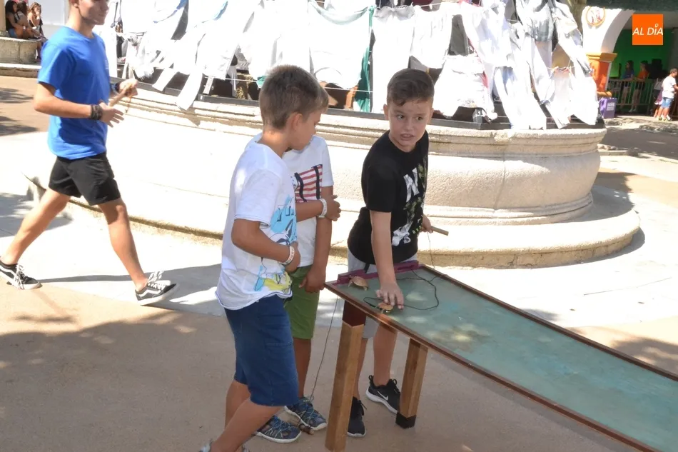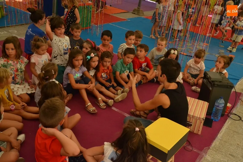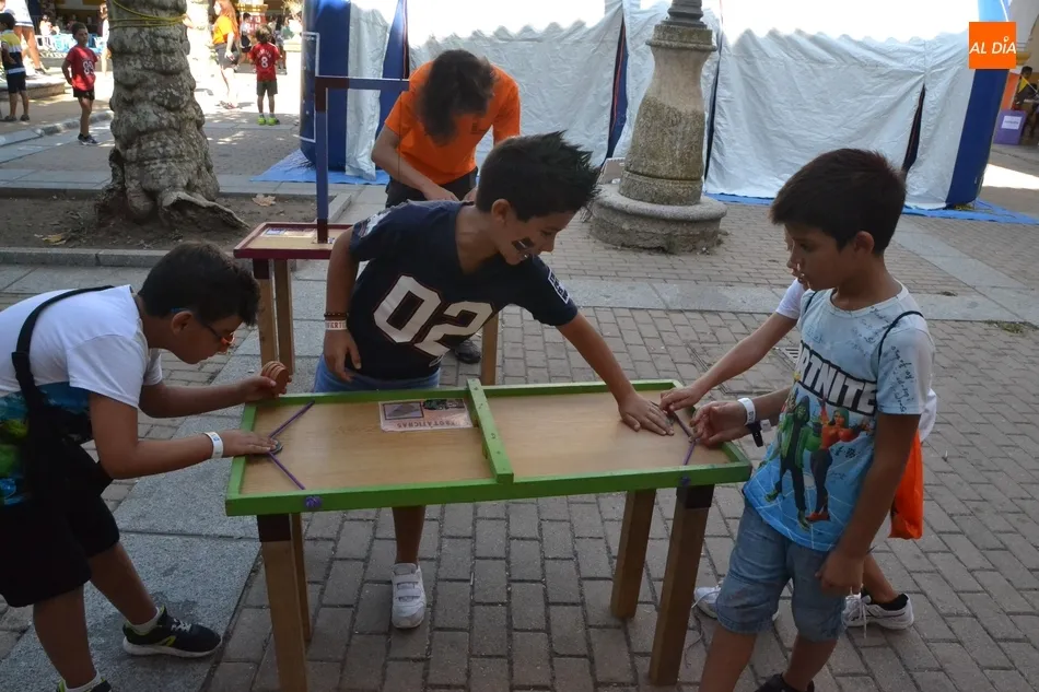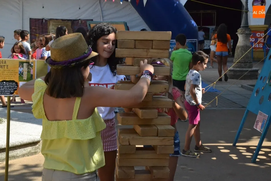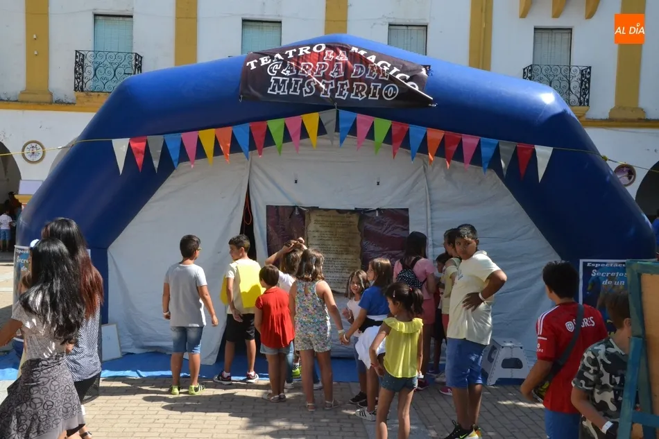 El programa de animación infantil de la Feria de Teatro 2019 gira en torno a la plástica escénica, pero en la Plazuela del Buen Alcalde también hay espacio para elementos fuera de esa temática, como por ejemplo para La Carpa del Misterio de la compañía Dramagia, que ofrece funciones de magia teatralizada, o para los juegos interactivos instalados por la compañía Kamaru Teatro, que están causando sensación.