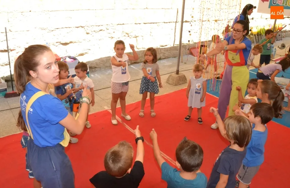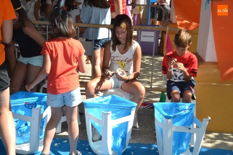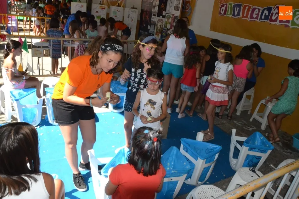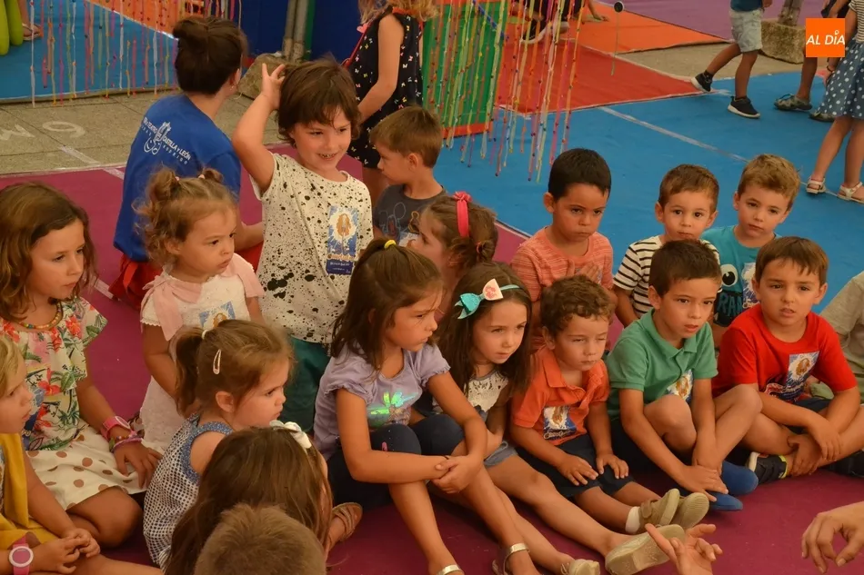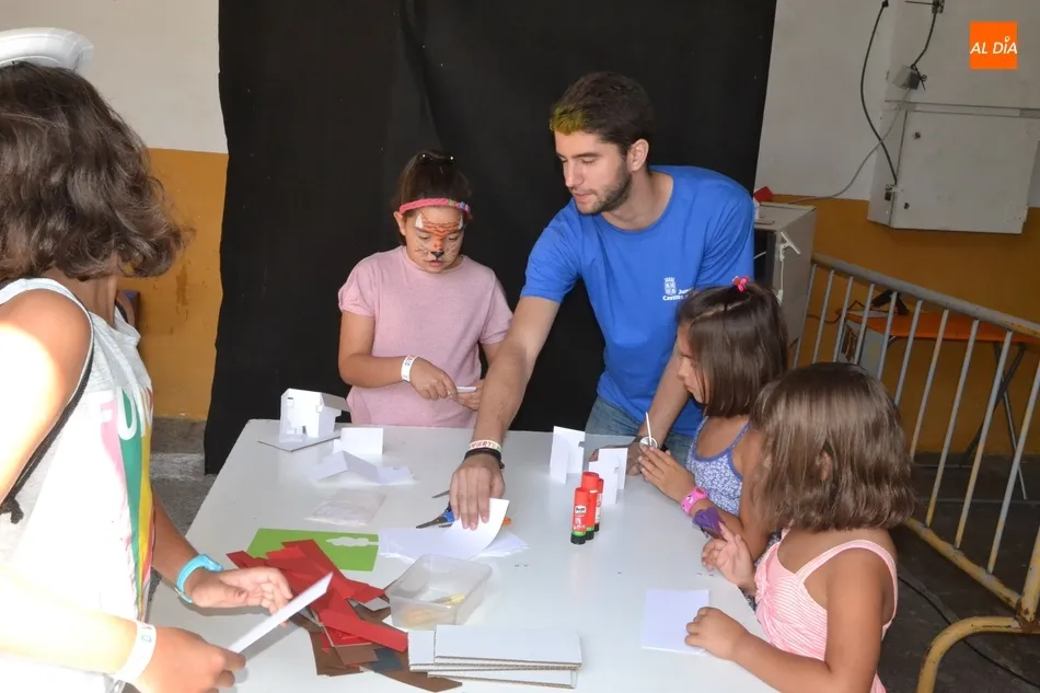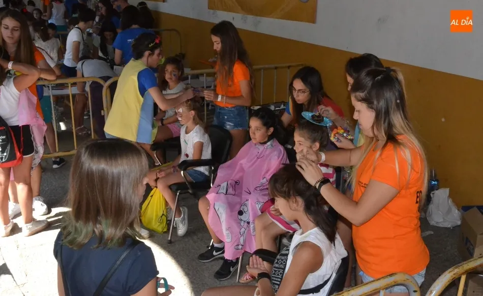 Hay que recordar que todas las actividades del Divierteatro están dirigidas por un equipo de 70 monitores, jóvenes mayores de 18 años, que este año lucen una camiseta azul tirando a oscuro. Junto a ellos hay otros 34 jóvenes de 16 y 17 años, con camisetas naranjas, que ejercen como Equipo de Apoyo.