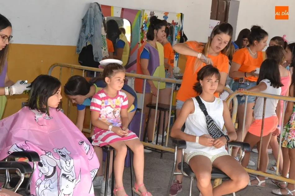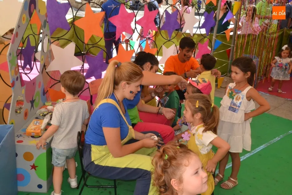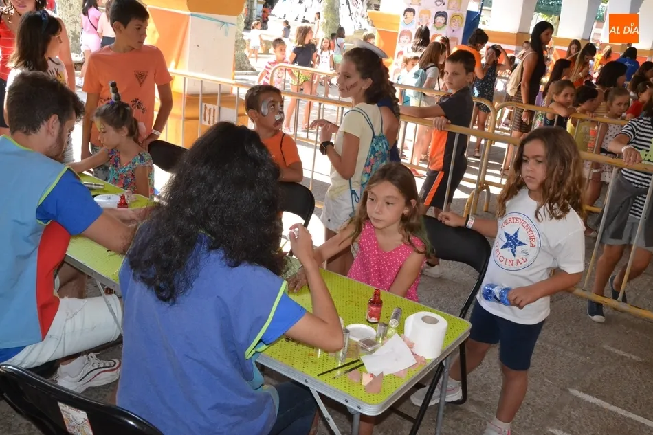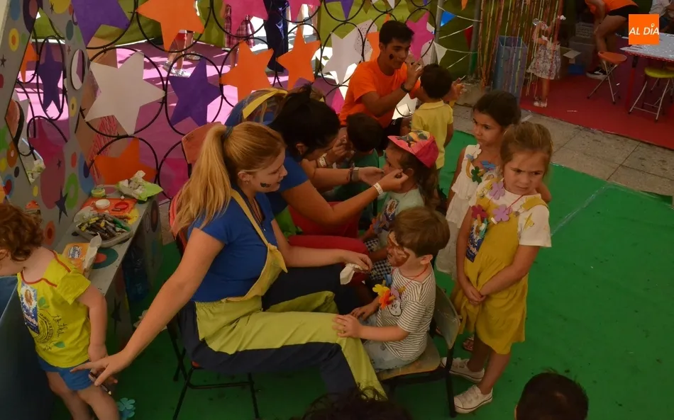 Además de con la cara maquillada como es tradición, numerosos niños se marchan este año del Divierteatro con el pelo pintado