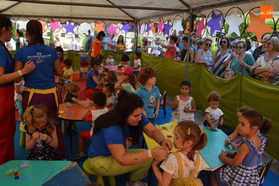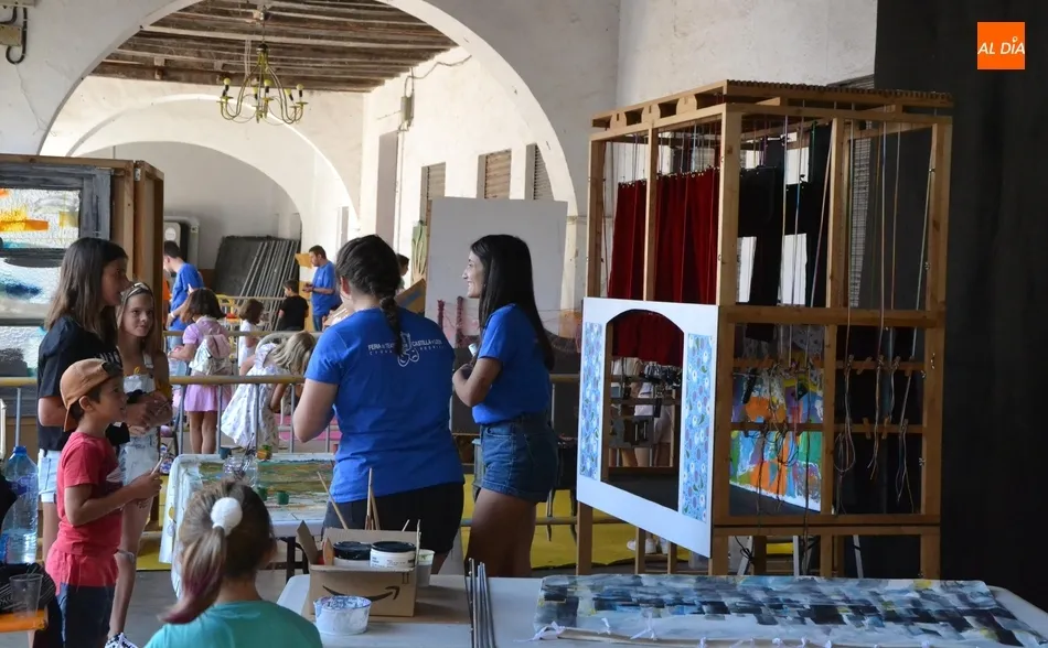 El Divierteatro de este año, todo un desafío gracias a Kamaru   | Imagen 1Como decíamos, los niños se pueden mover a su ritmo por esa zona de juegos interactivos, algo similar a lo que ocurre con los talleres repartidos por los soportales, que giran en torno a la escenografía, el vestuario, los elementos visuales, la caracterización, el maquillaje o el atrezzo de los espectáculos escénicos, que también están despertando un gran interés.