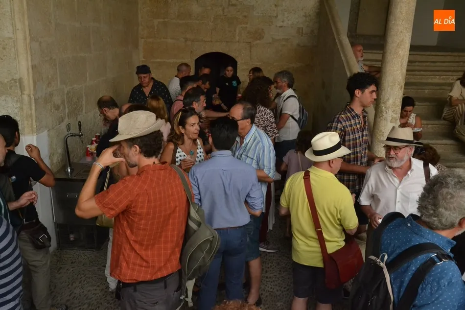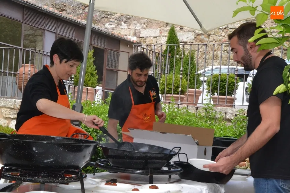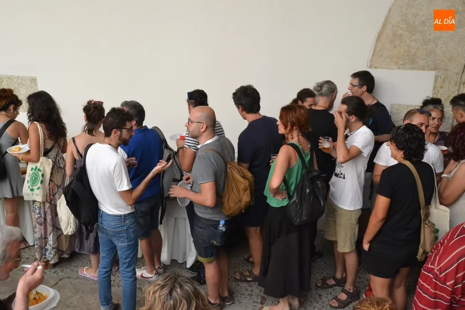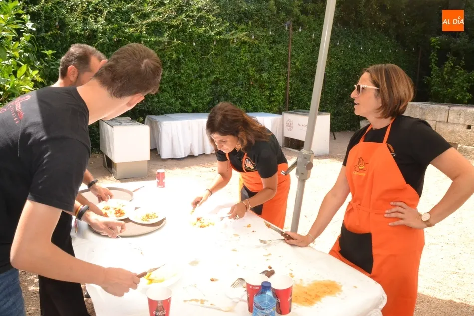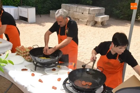 Todos aquellos profesionales acreditados de la Feria que se acercaron a la hora de comer del jueves al Palacio de Montarco para reponer fuerzas en el habitual vermú teatral, tuvieron la oportunidad de probar un año más los huevos fritos con farinato, gracias a la colaboración de la Asociación Gastronómica de Amigos del Farinato, que estuvo preparando varias decenas de raciones de este plato en el patio del Palacio de Montarco.