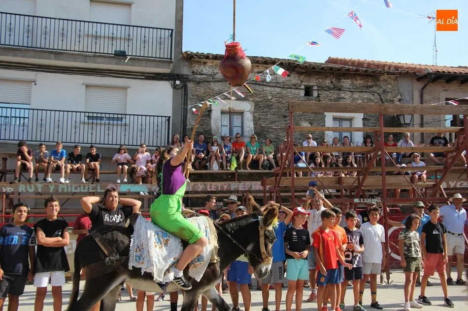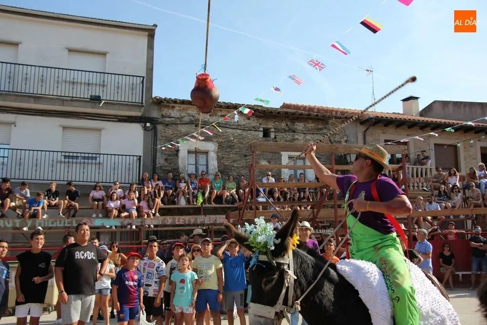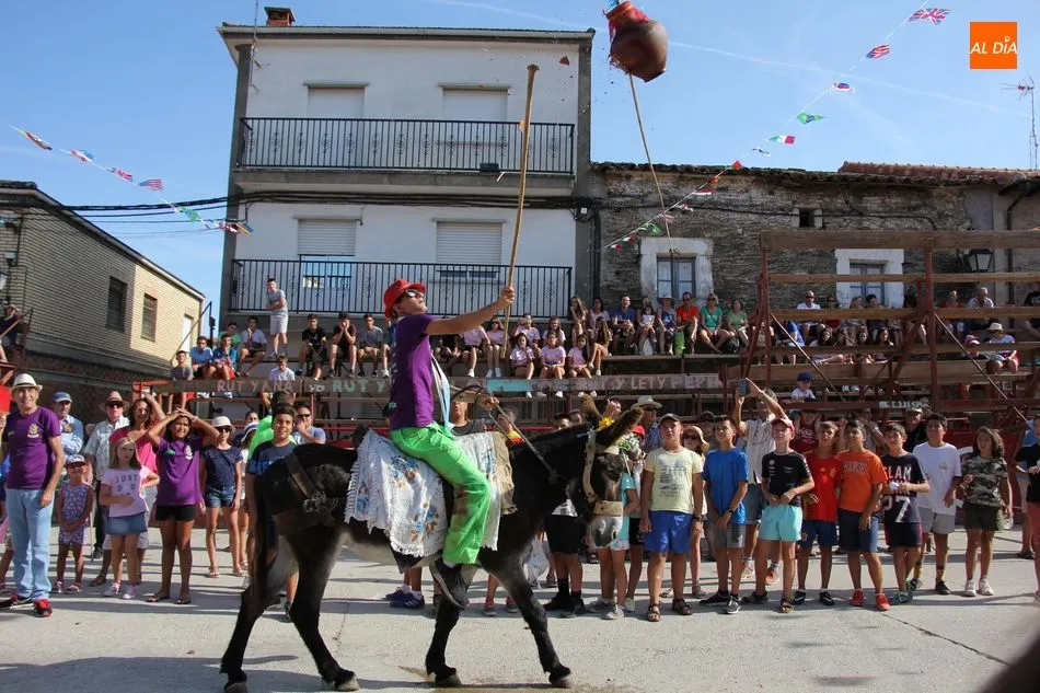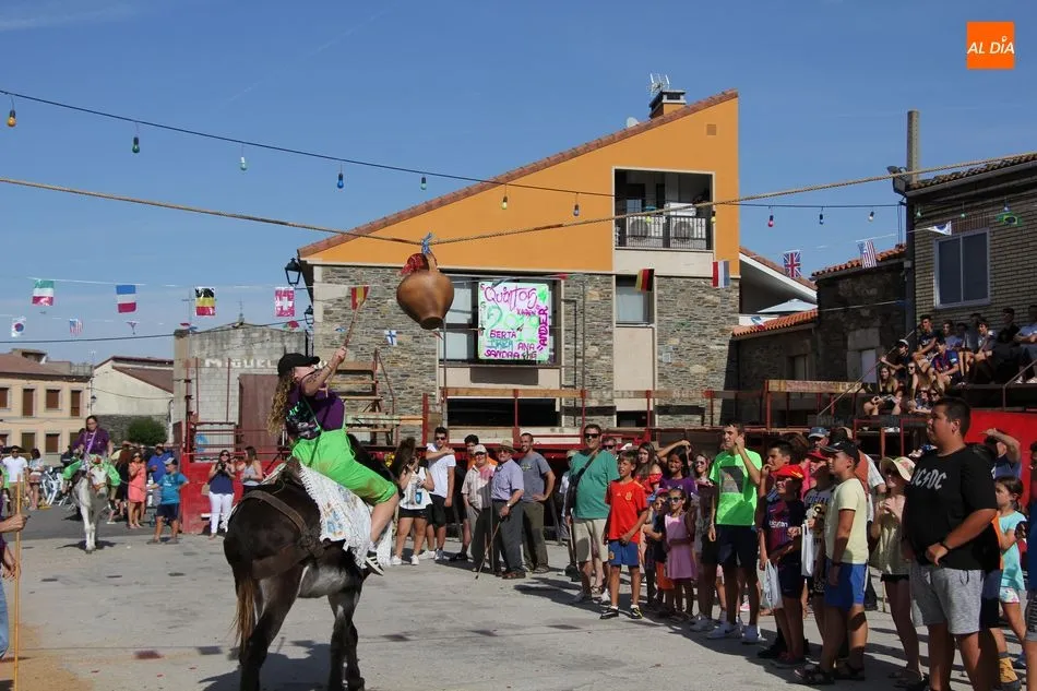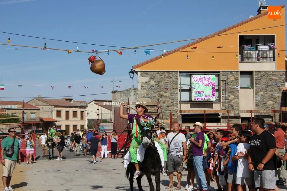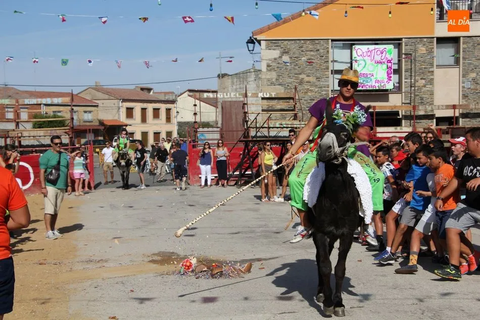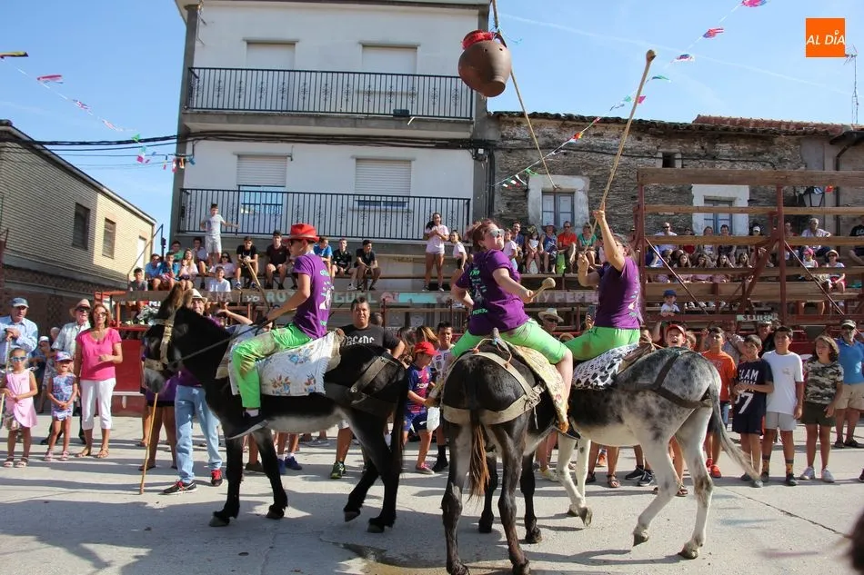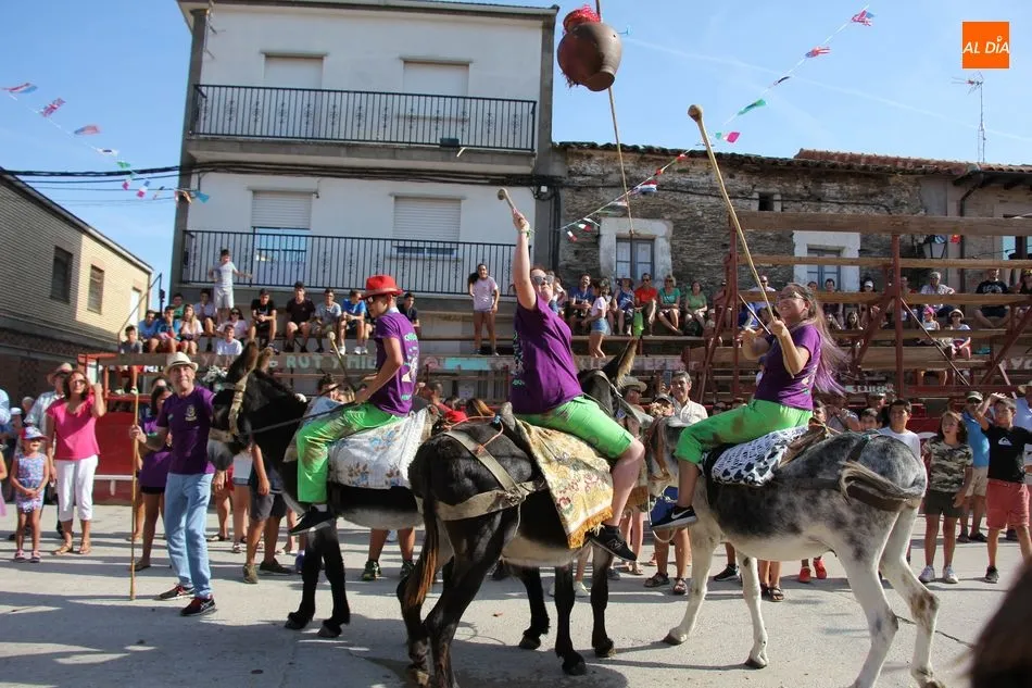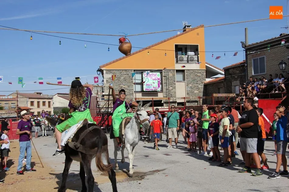 Como manda la tradición, los jóvenes montaron a lomos de burros para intentar romper los cántaros, acto al que siguió el singular baile de la rosca de quintos
