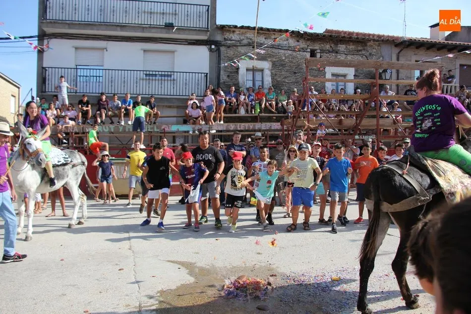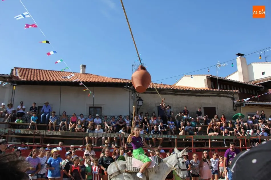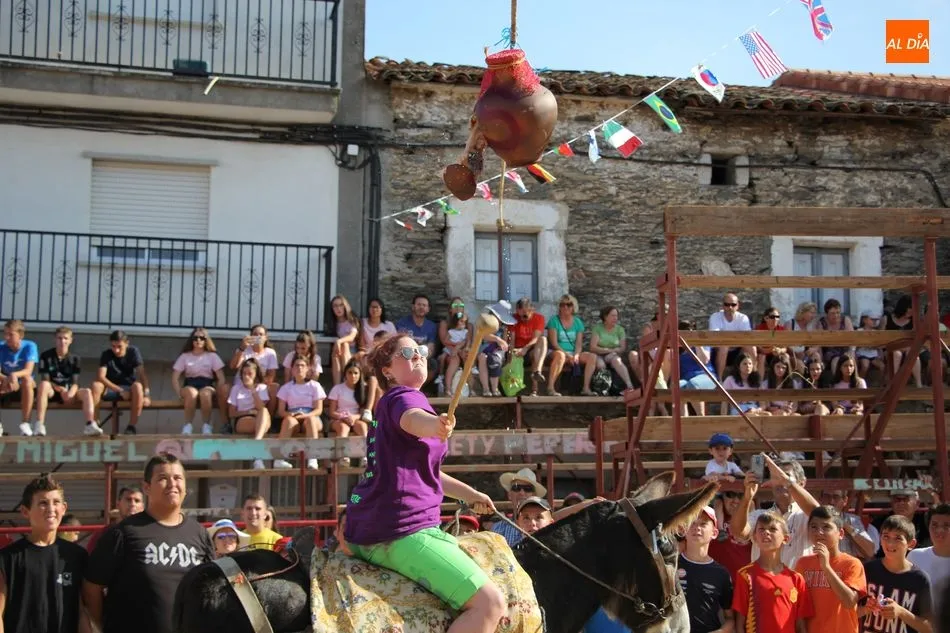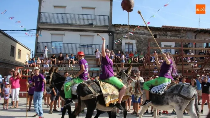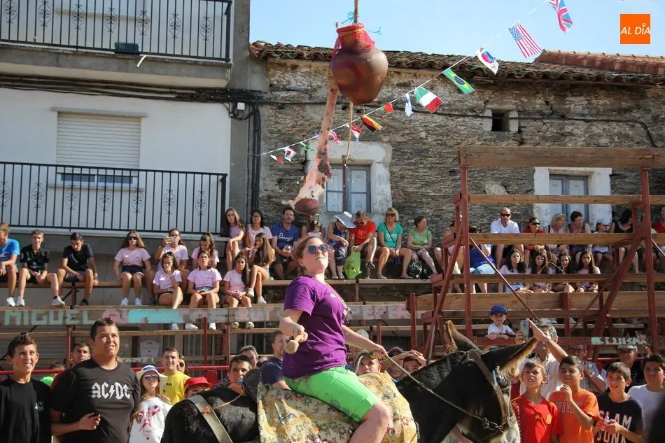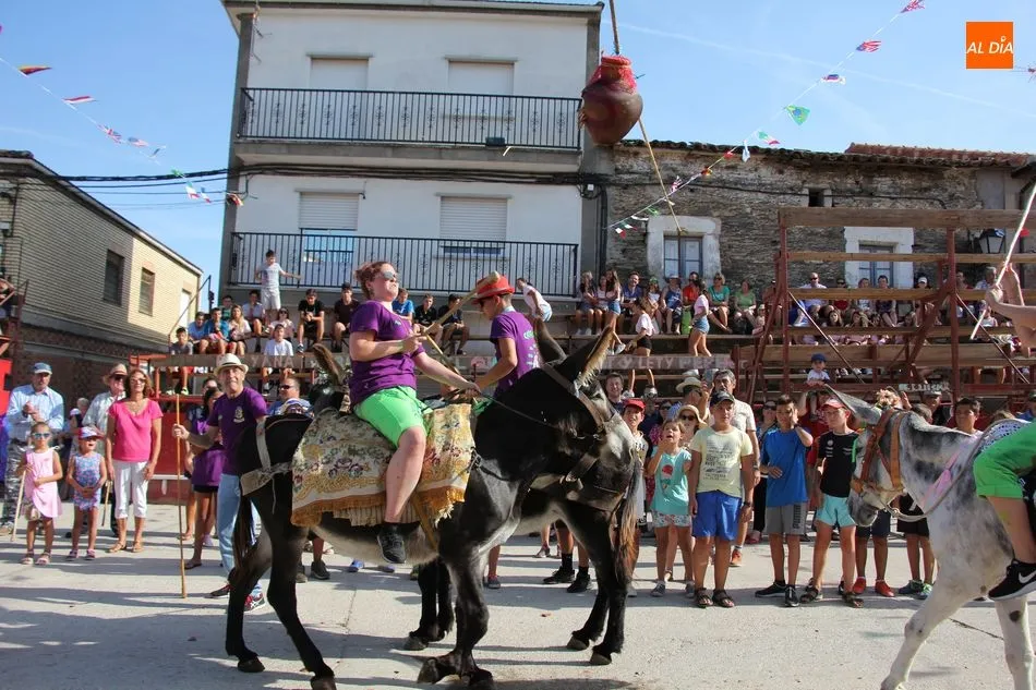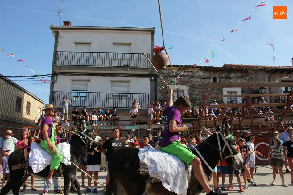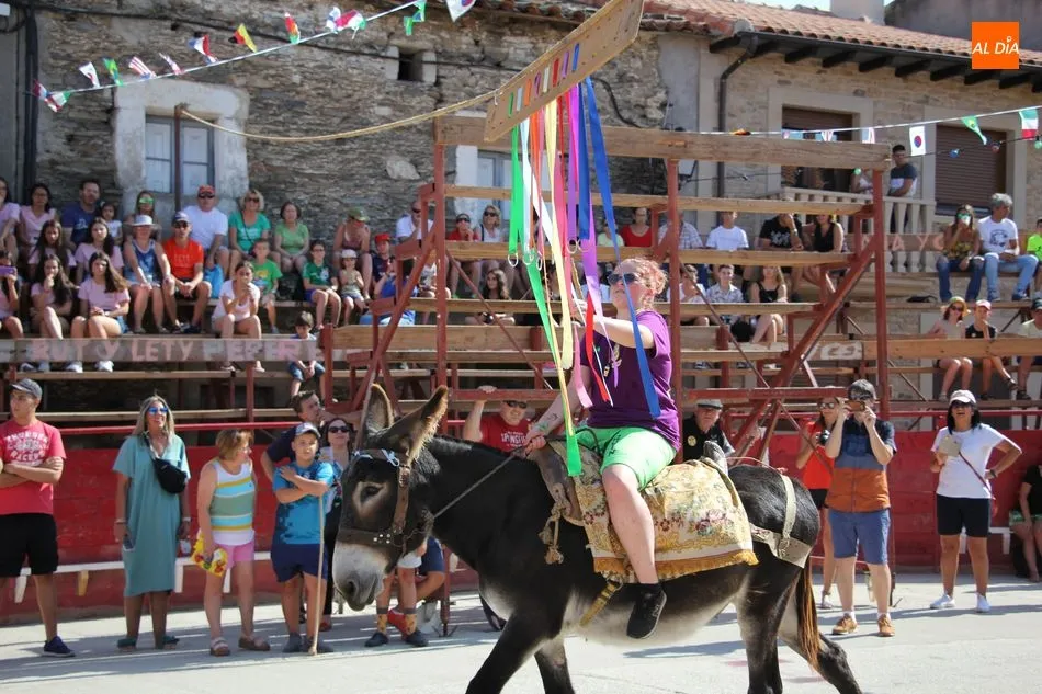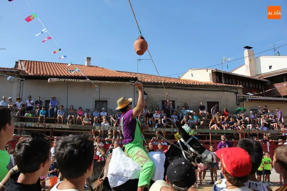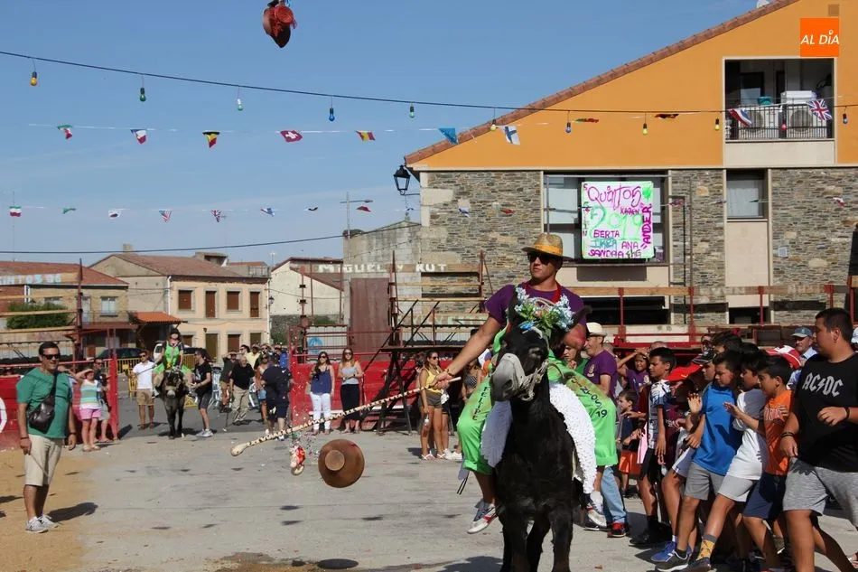Como manda la tradición, los jóvenes montaron a lomos de burros para intentar romper los cántaros, acto al que siguió el singular baile de la rosca de quintos