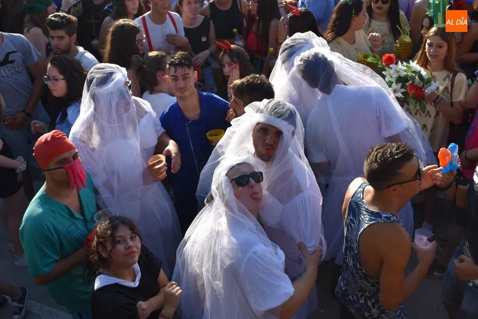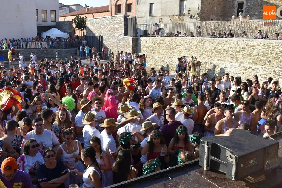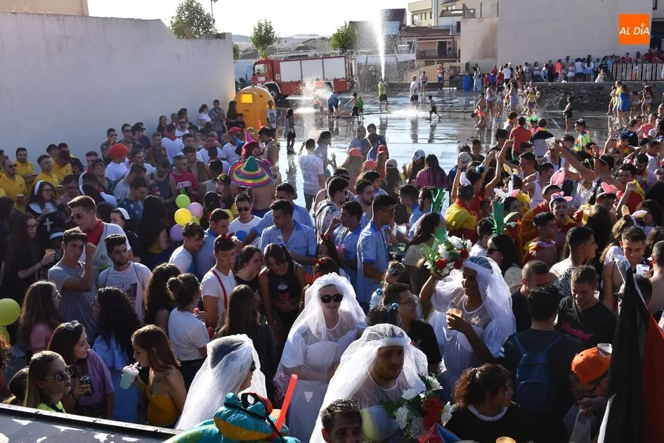 Alba de Tormes está ya en fiestas tras el chupinazo que se ha vivido en el parking de la Calle Hospital. Cientos de jóvenes han disfrutado de una tarde llena de diversión, música y agua. Desde las siete y media de las tarde los jóvenes fueron llegando al nuevo lugar donde se celebraba para lucir allí sus disfraces y poder escuchar la música de DJ Peske, Mario Salcedo y David H.