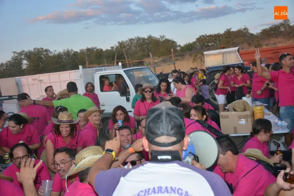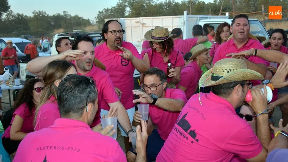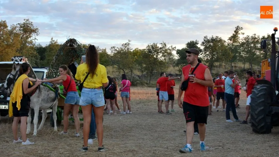 A continuación, las distintas peñas partieron, a pie mayoritariamente, hacia el Prao del Toro para disfrutar de una gran fiesta campera. En esta finca municipal se merendó, se hizo una visita a los novillos que esperan en una finca aneja hasta el día de su encierro y posterior lidia, y se cantará y se bailará hasta el anochecer, momento en que se iniciará el regreso al pueblo en una larga Cabalgata de burros, caballos y diversos vehículos que trasladan a las Peñas.