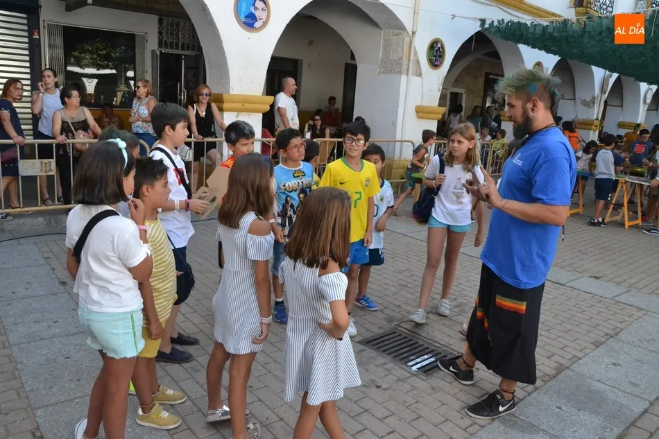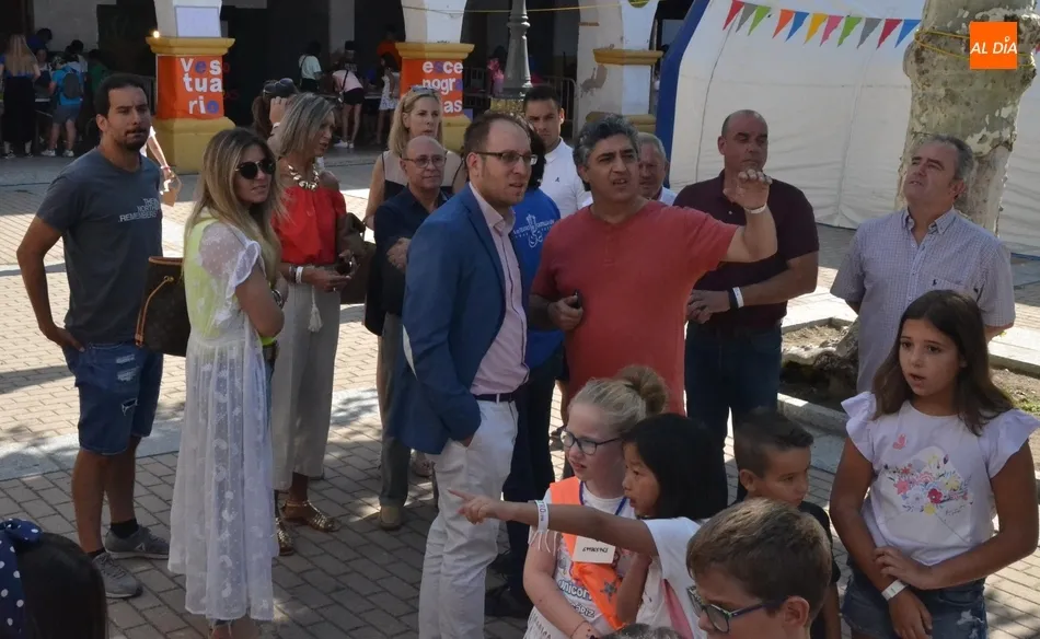 Asimismo, también entraron a saludar a Denis Rafter los miembros de la Corporación Municipal encabezados por el alcalde Marcos Iglesias que durante la tercera sesión del Divierteatro llevaron a cabo la clásica visita institucional. Hay que apuntar que uno de los miembros de la Corporación, la delegada de Juventud Paola Muñoz, lleva todas las mañanas de Feria en la Plazuela del Buen Alcalde, al estar ejerciendo un año más como monitora.