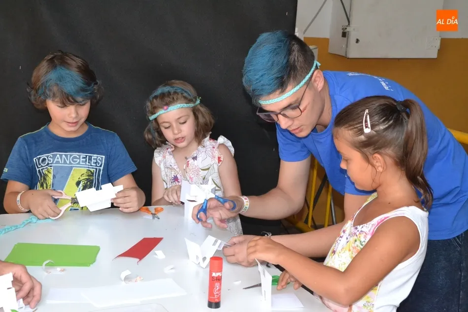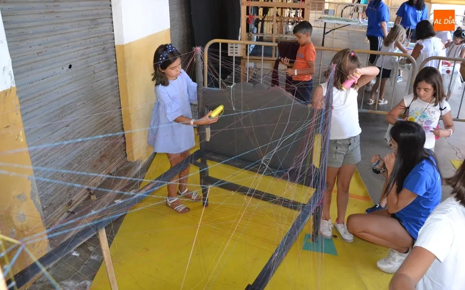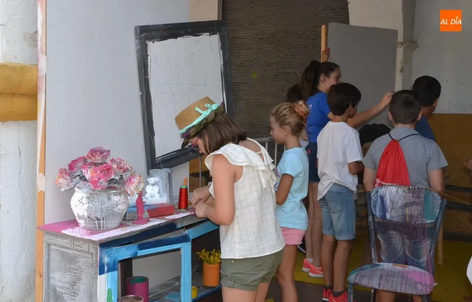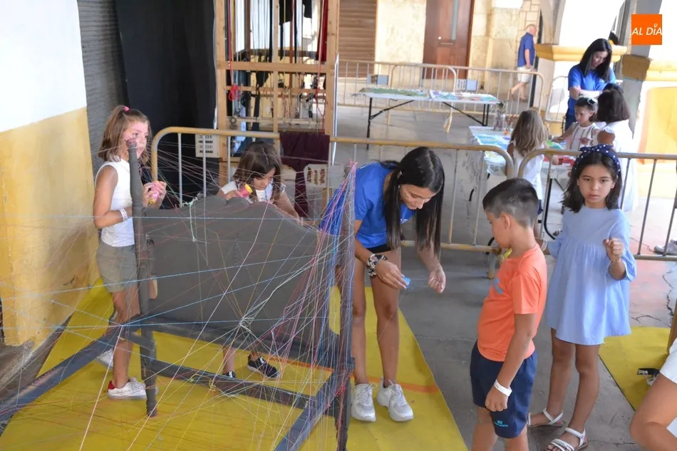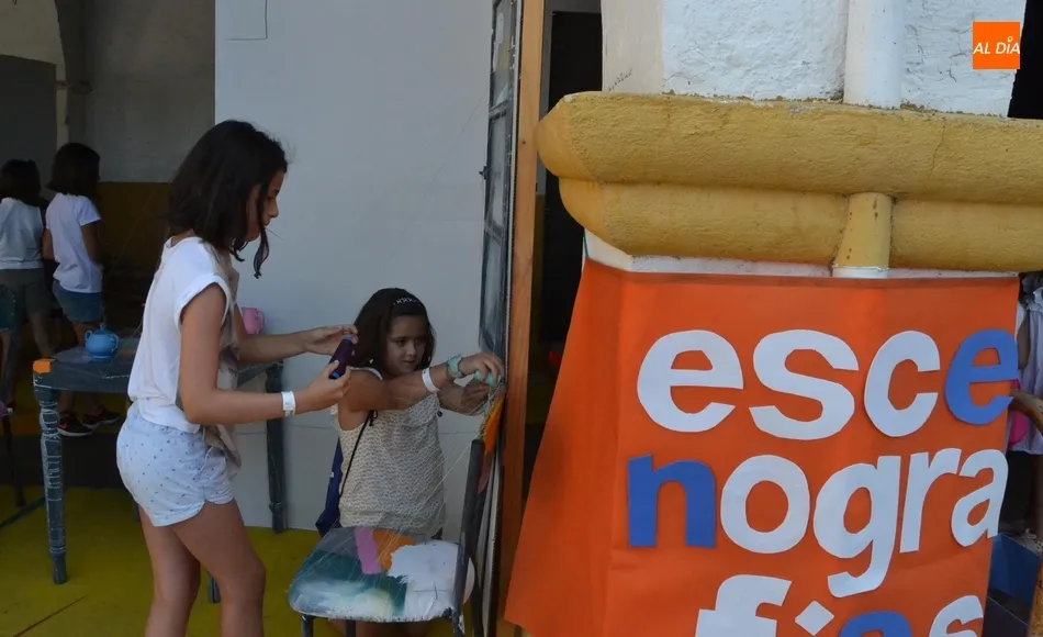 Como hemos venido apuntando durante estos días, el Divierteatro de este año permite asimismo conocer cómo se crea la escenografía de una función, pintando decorados para un pequeño teatrillo, o envolviendo con hilos distintos objetos. Asimismo, los niños se están ?insertando? en decorados virtuales, están creando escenografías de cartón, y teatros en miniatura (con cajas de cereales), entre otras actividades.