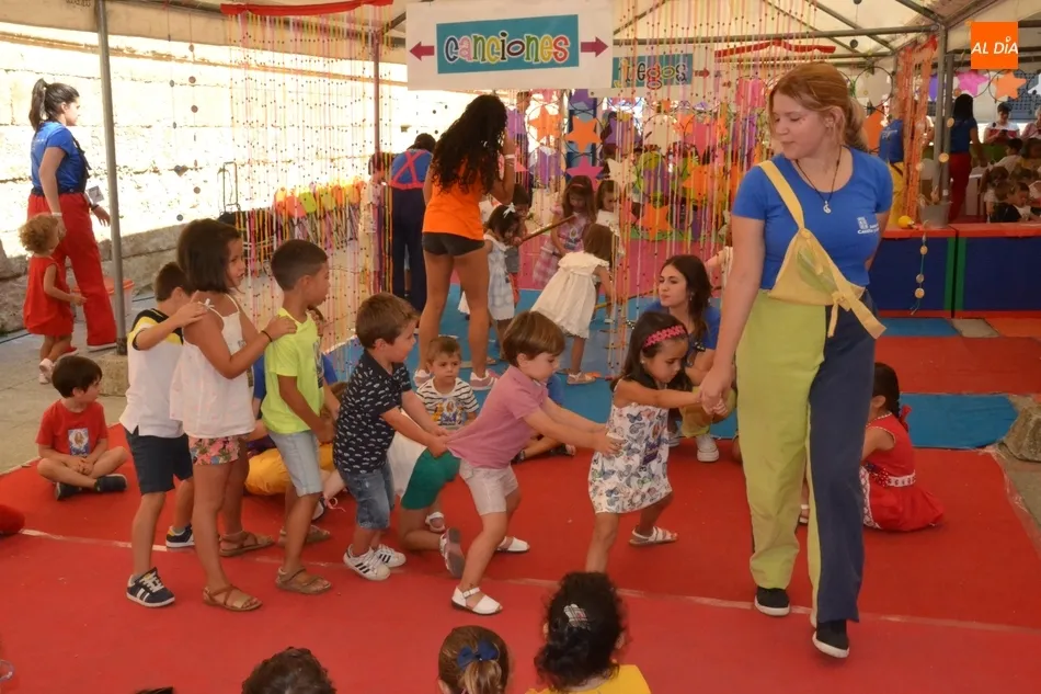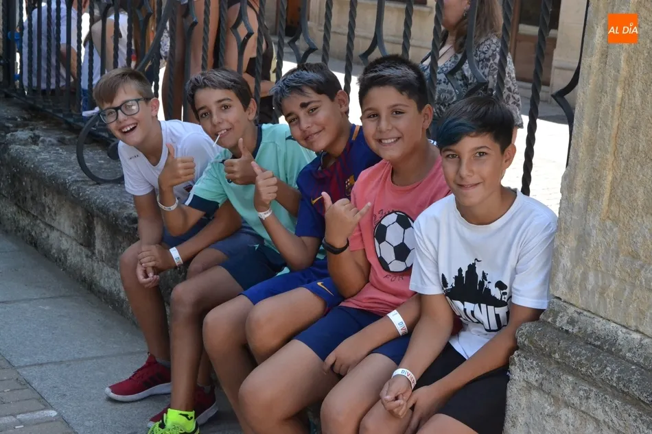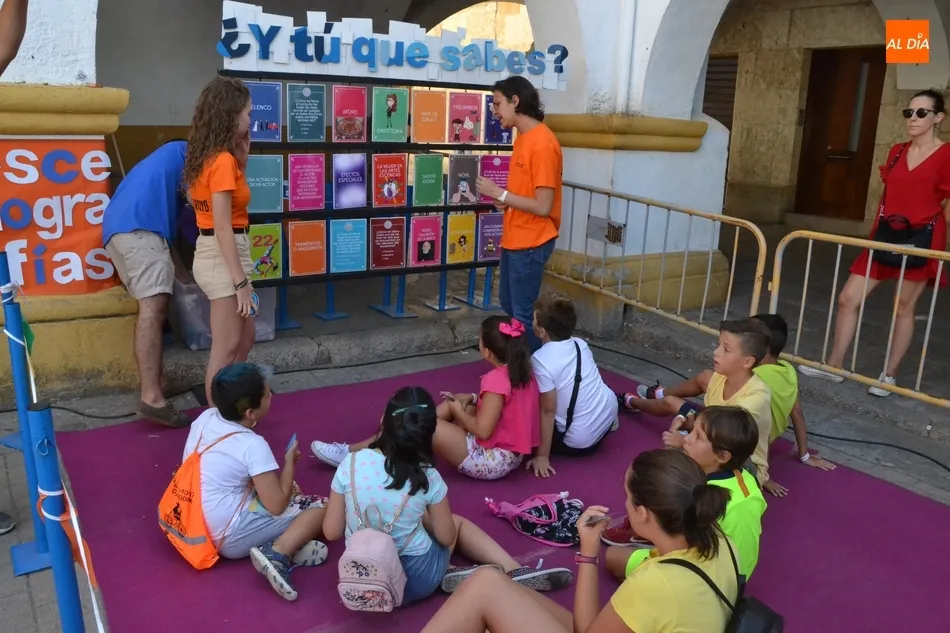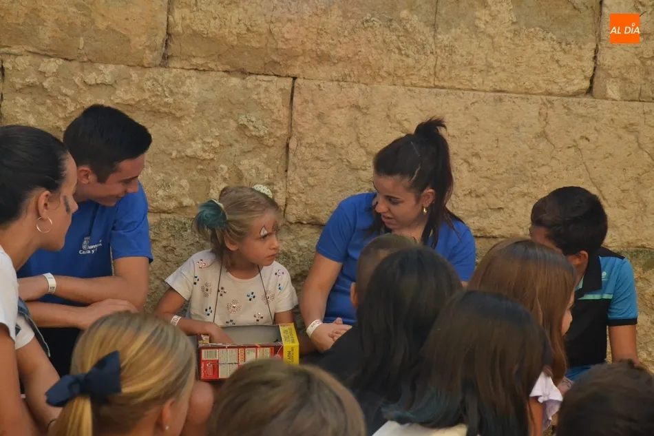 En esta explicación de qué es un apuntador y cuándo interviene, los chavales que se adentran en el Patio de Cerralbo tienen un papel protagonista, representando por ejemplo Romeo y Julieta. Entre los niños que pasaron por allí en la mañana del viernes estuvo un grupo de chavales de Sancti-Spíritus, que un año más se han acercado a disfrutar de la Feria.