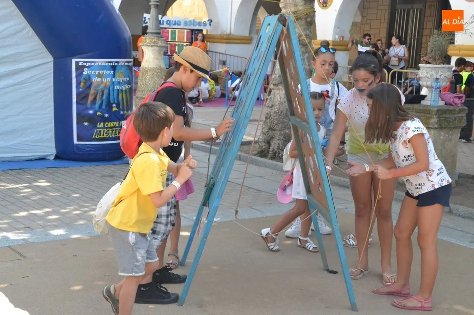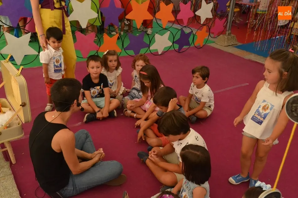El Divierteatro 2019 cuenta con dos espectáculos escénicos, de los que cada mañana de Feria se ofrecen tres pases. Por un lado, en una carpa específica, la compañía Dramagia está ofreciendo a los niños que por allí pasan Secretos de un Viajero Mágico, un espectáculo de magia teatralizada, que pretende acercar al público al teatro.