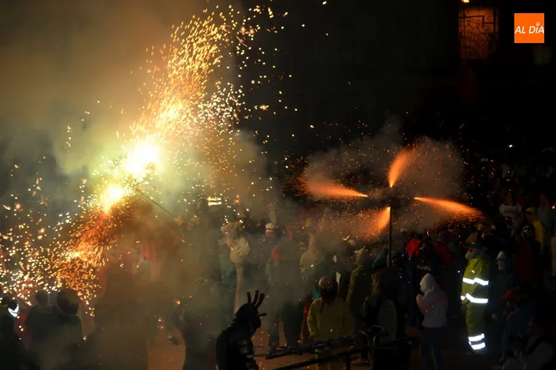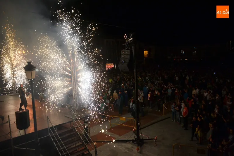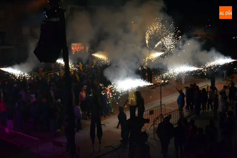 icipar o ver esta puesta en escena, mezcla de teatro, música y fuego, que volvía a tener como plato principal un pasacalles, congregando a una multitud que no paraba de bailar bajo la lluvia de chispas hasta el final. Una actuación que culminaba con un gran castillo de fuegos artificiales en la Plaza Agustín Martínez Soler, como broche de oro a la quema de una pólvora que este año ha contado con mayor presencia en las calles y plazas habilitadas para el recorrido.