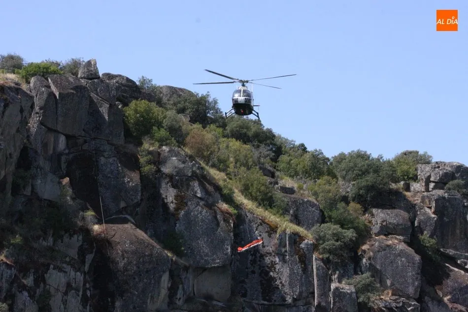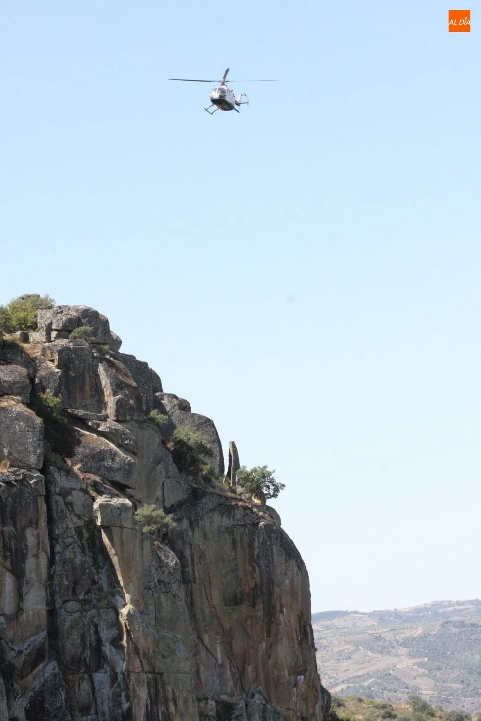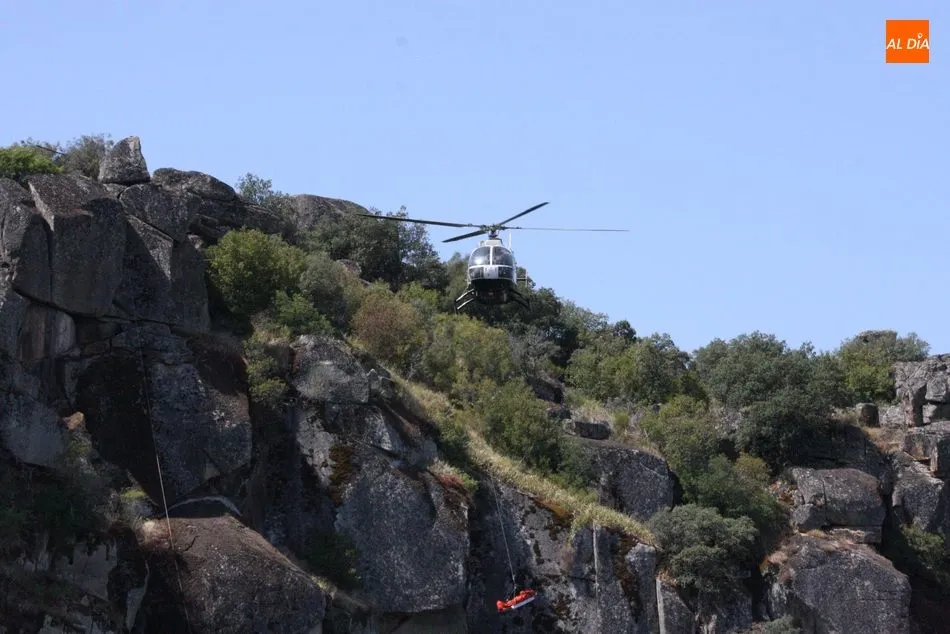 Agentes del Grupo de Rescate Espeleológico y de Montaña (GREM) de la Guardia Civil accedían a primera hora de la mañana hasta el lugar donde se hallaba el cuerpo para proceder posteriormente a su extracción mediante un helicóptero a través de un sistema de cuerdas al que se anclaba una camilla. A continuación, el helicóptero regresaba al lugar para recoger a los agentes encargados de preparar la extracción. En estas labores también han participado agentes de la demarcación de Vitigudino.