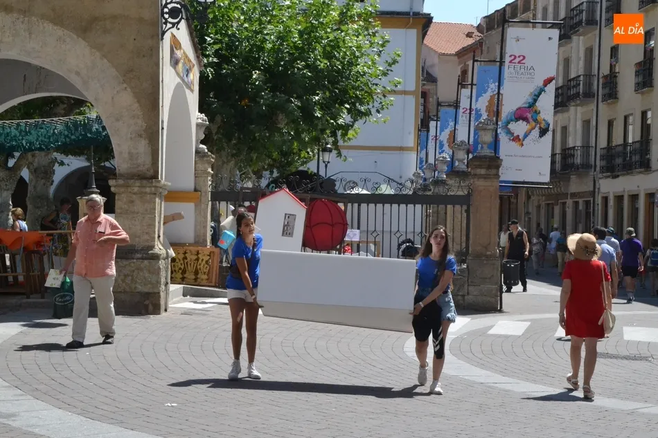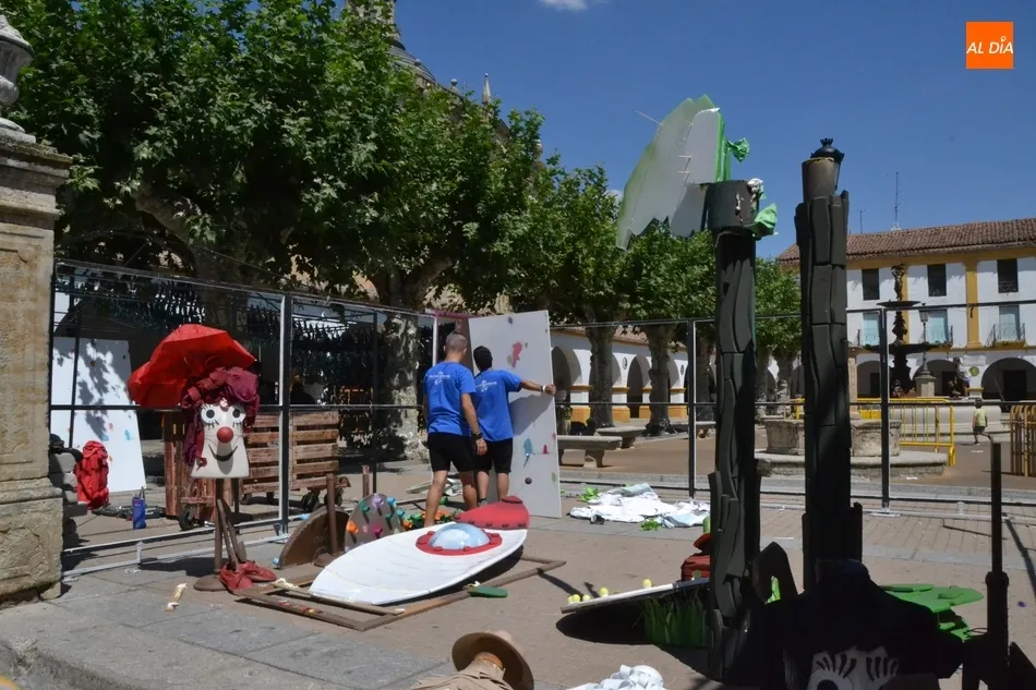 Sin embargo, este desmontaje del mediodía sabatino fue aún más profundo, ya que tocaba llevarse del lugar (estos días han estado guardados en la antigua guardería Mi Otra Casa y en el Patio de Cerralbo) todos los elementos del programa. En este sentido, tocó desmembrar la entrada al Divierteatro, la Diviertaquilla, la estructura que ha envuelto la fuente de la Plazuela del Buen Alcalde, y las cubiertas que ha habido en los laterales de éste ágora, que han ayudado a que hubiera más sombra.