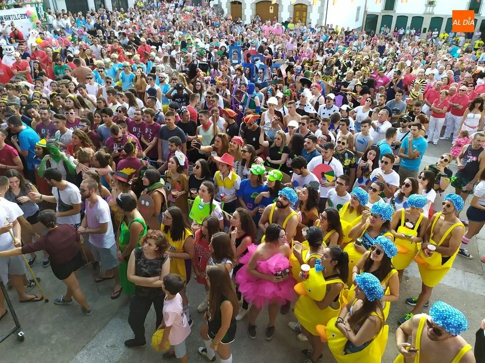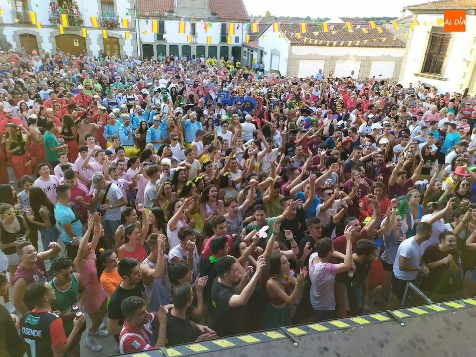 De vuelta a la plaza Mayor, llegó el turno del pregón. La Corporación Municipal, con el alcalde Juan Morato a la cabeza, acompañó a Meli García López, la que fuera profesora de la localidad durante 14 años, quien se encargó del discurso inicial de los festejos. A continuación se lanzó el chupinazo que señala el inicio de los festejos patronales. Pese a que los vecinos santeños ya hace varios días que disfrutan de un amplio programa de propuestas.