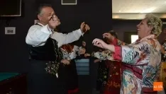 Encarnación Pérez acompañaba al grupo Los Cuatro Caños en sus bailes castellanos durante la recepción de alcaldes