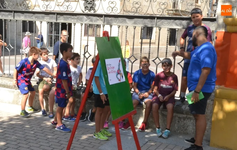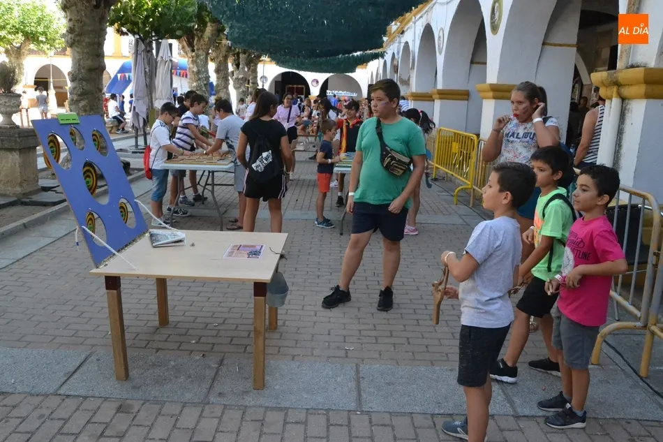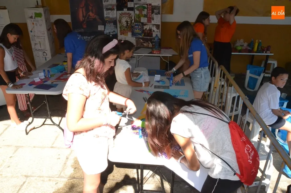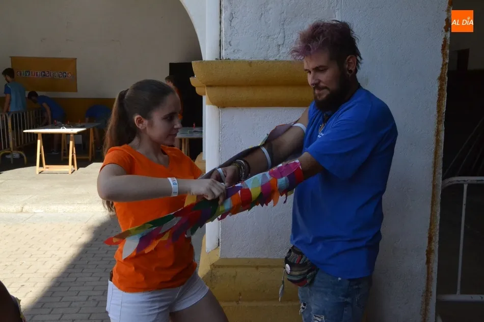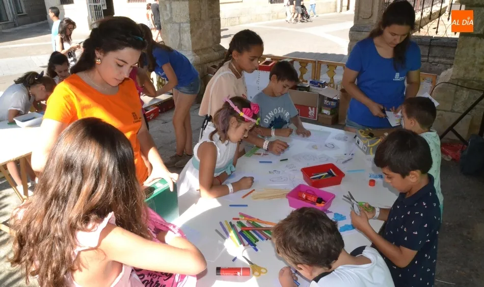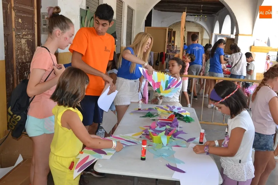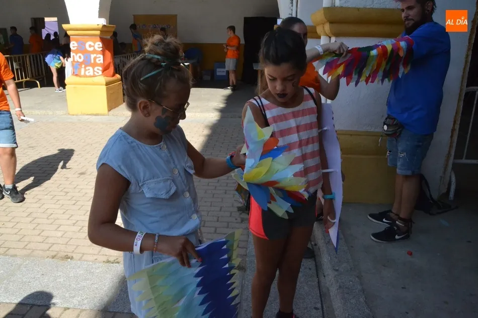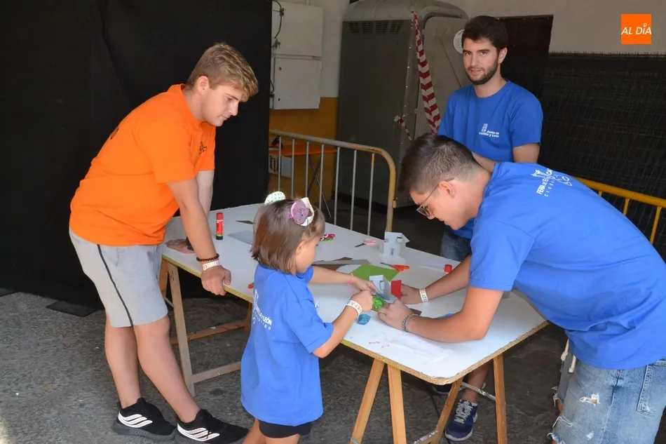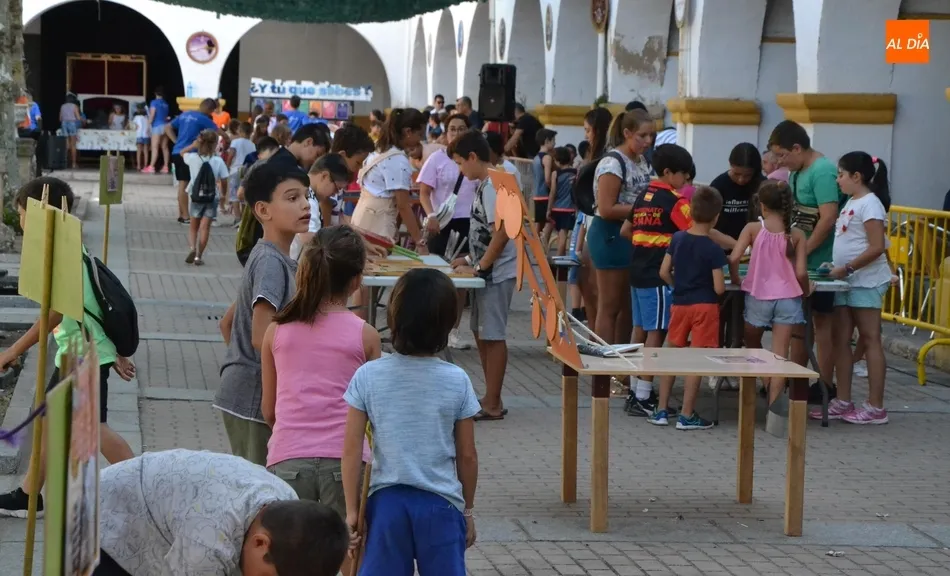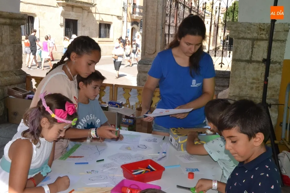 Como ha ocurrido todos los días, los chavales pudieron moverse libremente por todas las actividades preparadas (con un cierto control para que los chavales estén repartidos y no haya actividades saturadas y otras sin nadie), divididas en dos grandes bloques, los clásicos talleres por los soportales, y los elementos de ingenio que ha traído la compañía Kamaru Teatro bajo el nombre de Leña al juego.