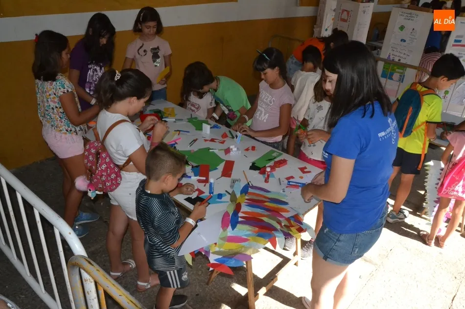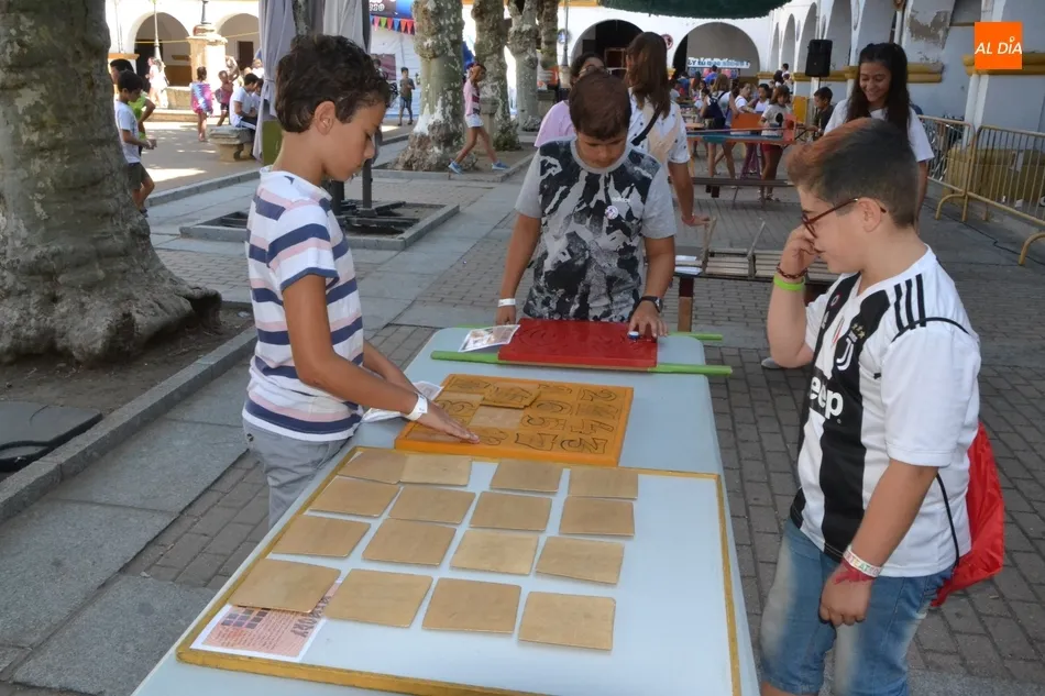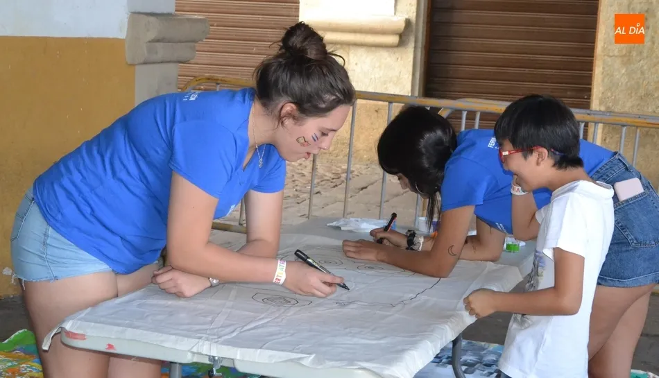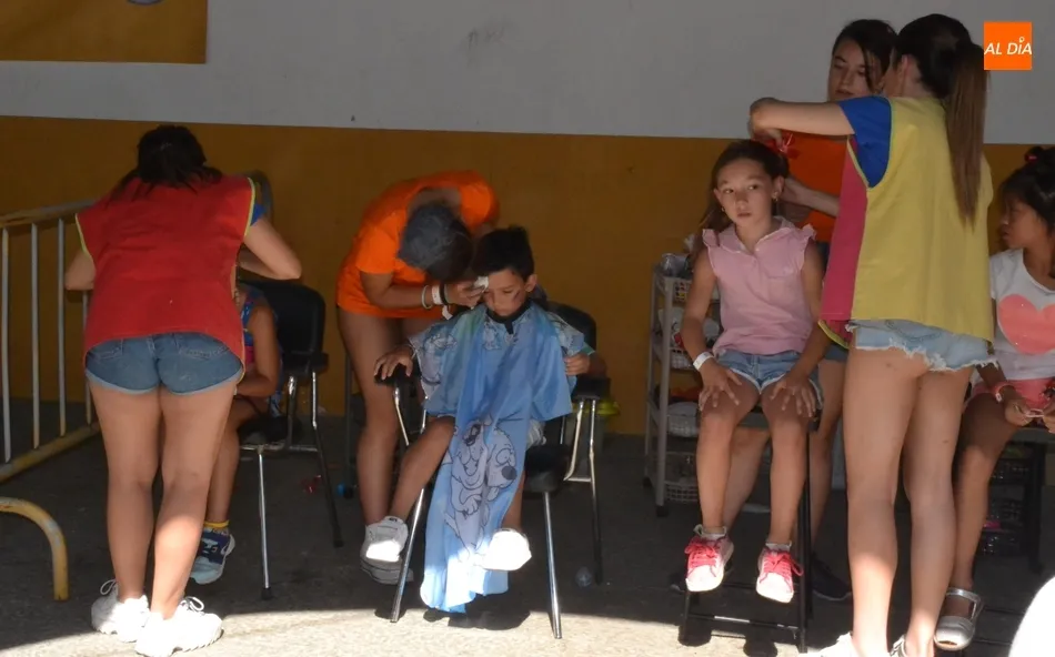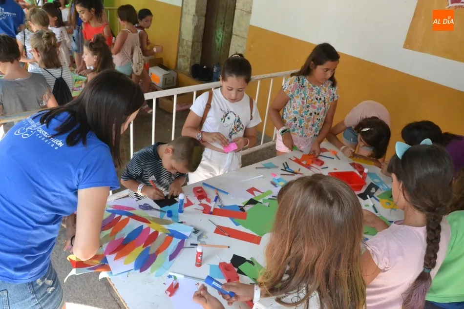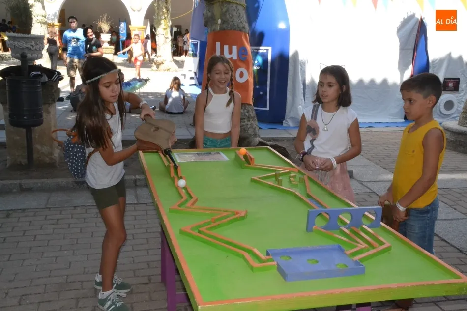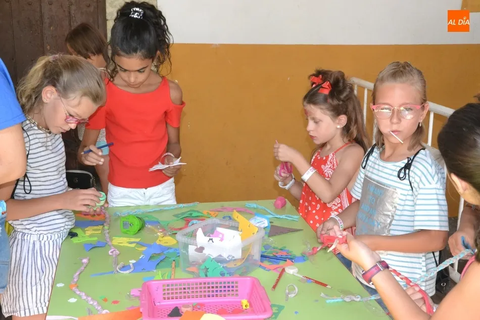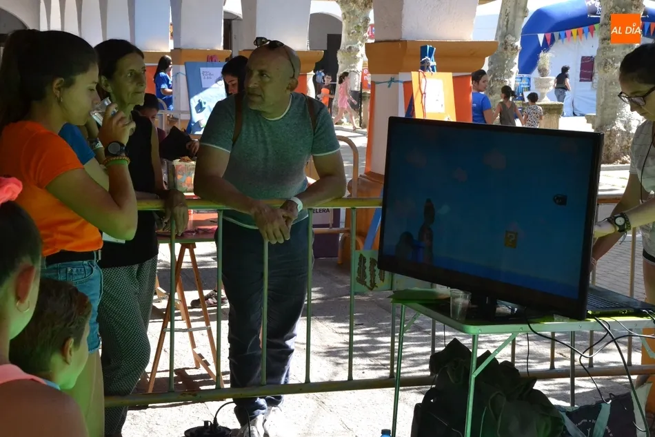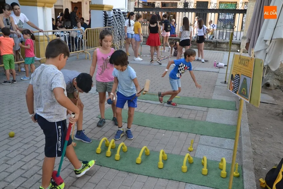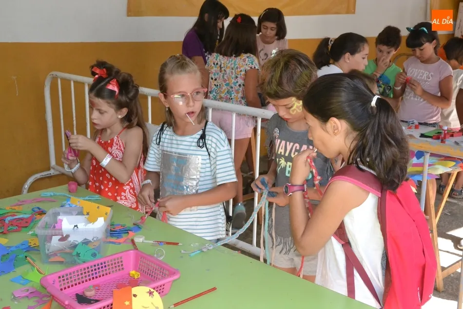 Como ha ocurrido todos los días, los chavales pudieron moverse libremente por todas las actividades preparadas (con un cierto control para que los chavales estén repartidos y no haya actividades saturadas y otras sin nadie), divididas en dos grandes bloques, los clásicos talleres por los soportales, y los elementos de ingenio que ha traído la compañía Kamaru Teatro bajo el nombre de Leña al juego.