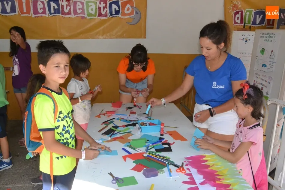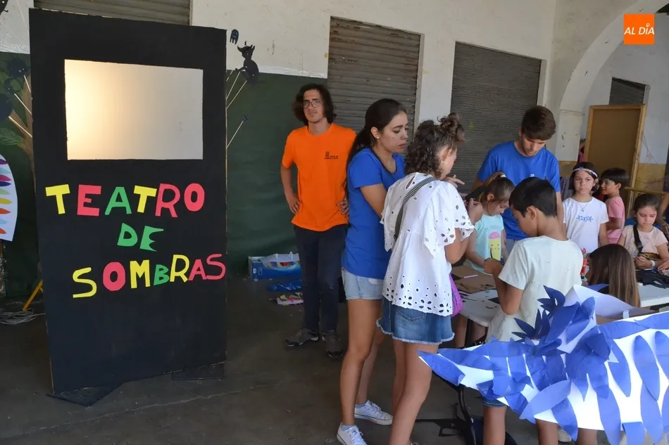 De igual modo, los chavales han tenido la oportunidad de construir varios modelos de teatrillos, como por ejemplo uno de cartón empleando cajas de cereales, o de dedos. Además, se han podido adentrar en un escenario virtual, comprobar cómo funciona el teatro de sombras, o las parrillas de luces de un escenario, al que le han podido poner un decorado mediante témperas.