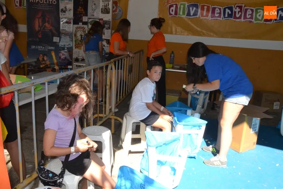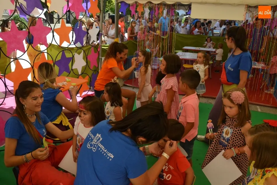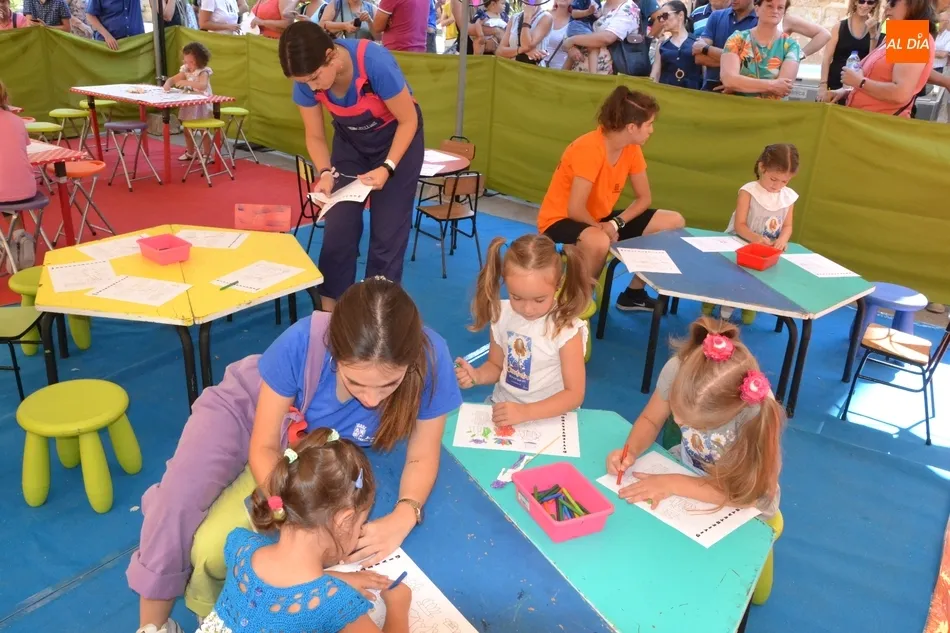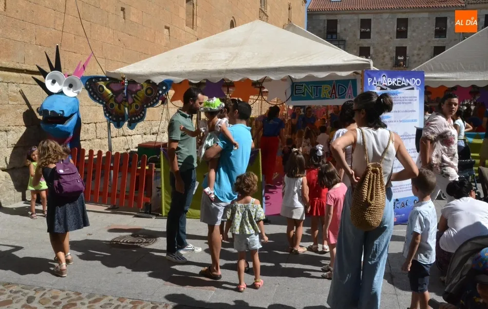 En lo que respecta al Palabreando, donde los niños tienen una mayor supervisión de sus progenitores desde el exterior, este año se ha vuelto a contar con varias zonas por las que han ido pasando los chavales de forma ordenada (el recorrido en total duraba unos 45 minutos-1 horas), contándose con juegos de bienvenida, canciones, cuentacuentos con Pilar Borrego, un taller de pintura plástica y otro de maquillaje, para irse con la cara pintada.
