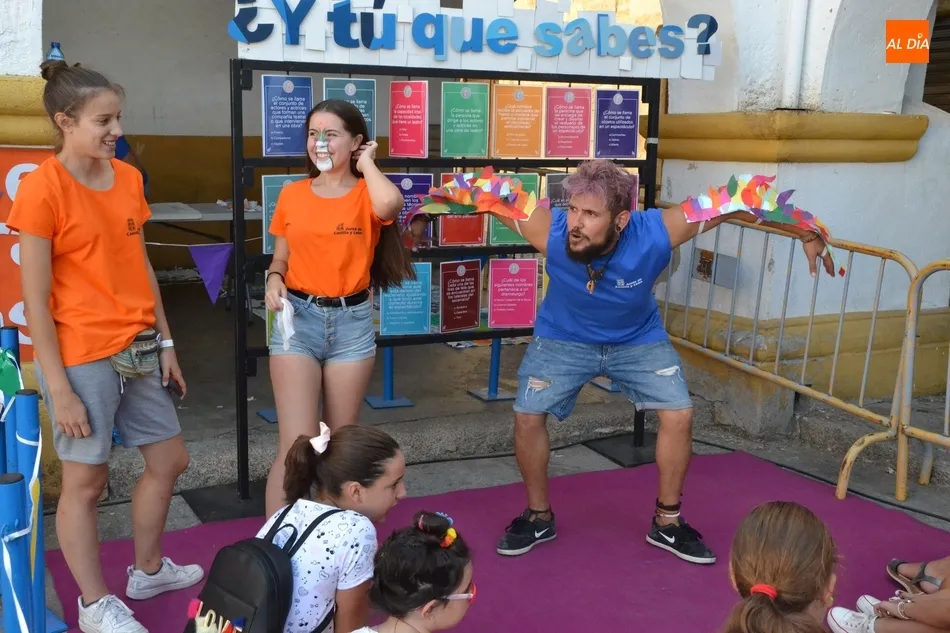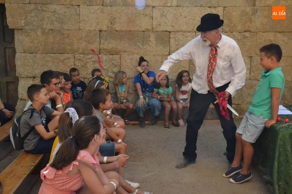 Para completar el master en el universo teatral de estos días, los chavales han aprendido nociones básicas teatrales en el juego ¿Y tú qué sabes?, y Denis Rafter les ha explicado en el Patio de Cerralbo el trabajo de un apuntador teatral. Junto a este espectáculo escénico, el Divierteatro 2019 ha incluido Secretos de un viajero mágico, en La Carpa del Misterio de la compañía vasca Dramagia.