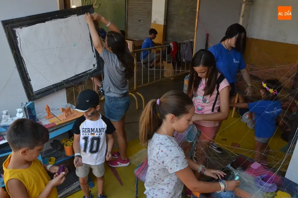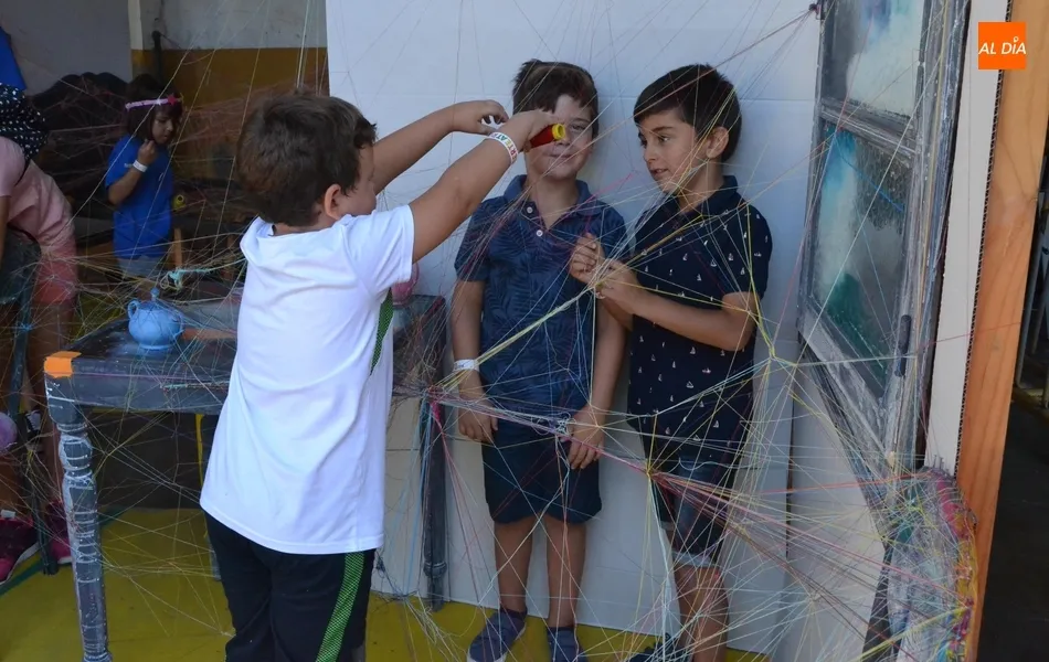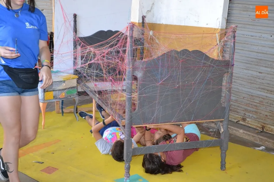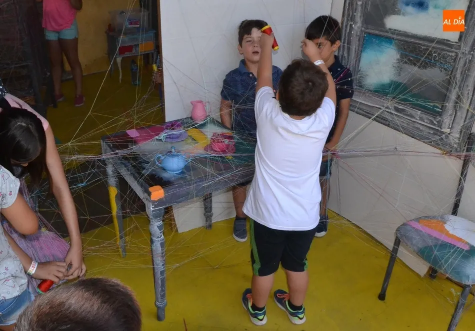 Los más pequeños quedan preparados para montar su propia función   | Imagen 1En ése último apartado de escenografía, se han enseñado varias técnicas, siendo quizá la más llamativa la escenografía con hilos, encargándose los chavales de ?envolver? varios objetos. En éste taller, algunos chavales incluso se tiraron en el suelo en la mañana del sábado para envolver con hilos una cama, lo que demuestra el hecho de que algunos de los participantes en el Divierteatro lo han dado absolutamente todo.