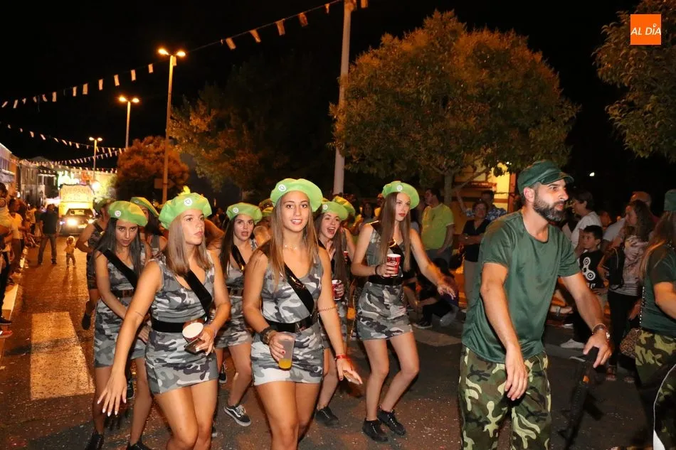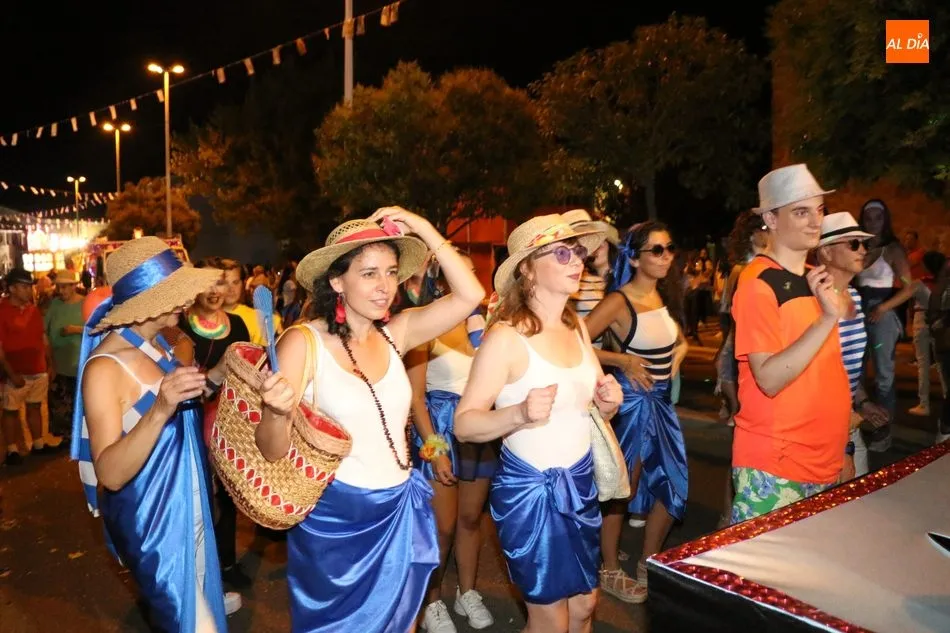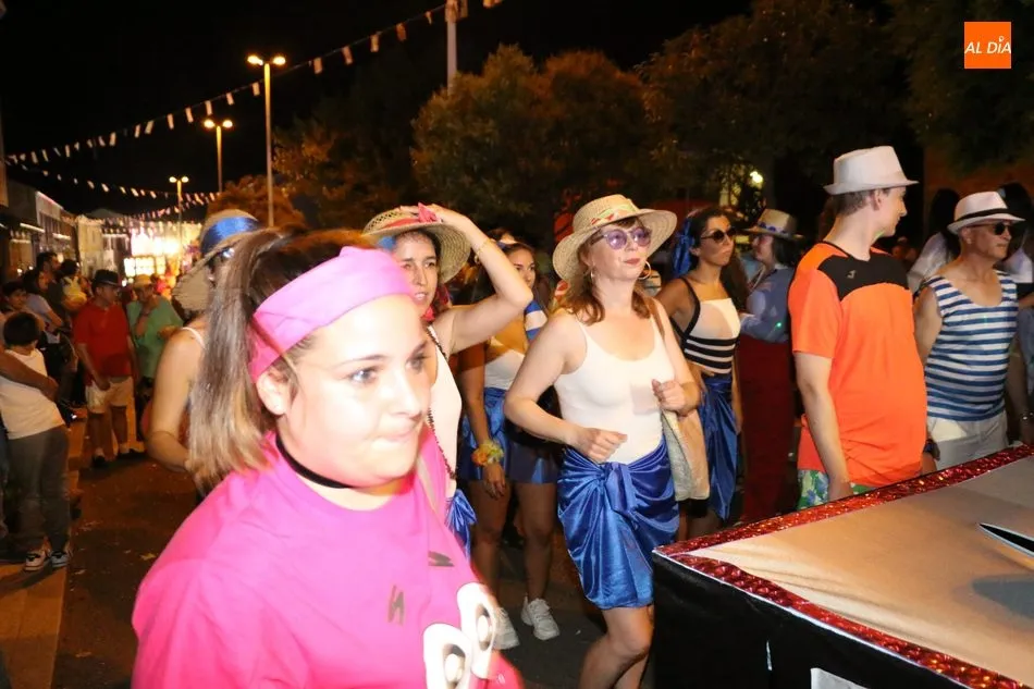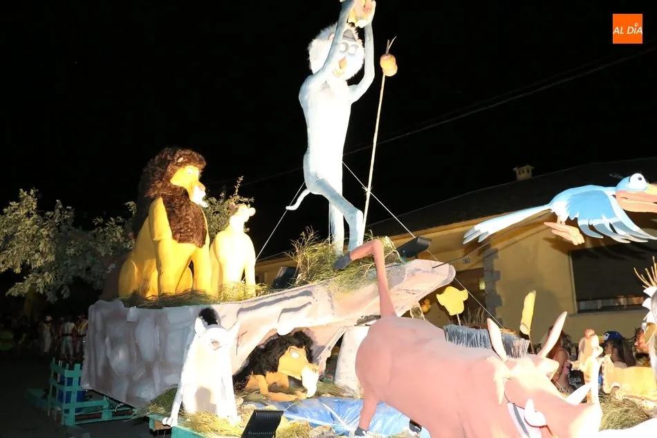 A la batucada del Blocco Charro seguía la carroza de la Corte de Honor, este año formada por Rebeca Martín Puertas, en el papel de reina; y por Carlota Castellanos Martín y Andrea Artetxe Honorato como damas. a continuacuón, encabezaba el desfile a concurso la peña S. B. con el Gran Pollón; seguida de Kapi-Lewis y su Mundo Taurino; y a continuación dos marciales grupos, Desborde con La Defensa de Las Arribes, y Arribes con su propio ejército, y entre ambas, Aspirina y el mundo Disney. Marijuana mostraba al público cómo es el verano en Las Arribes, mientras Osisris se iba de fiesta. La peña Atlatis mostraba el Omperio Aldeaviluco con el Coliseo y Winner cerraba el desfile de carrozas con el majestuoso Rey León. Por último, sin carroza, un grupo de animación que pusieron su salsa a ritmo de la charanga La Escala 2.0.