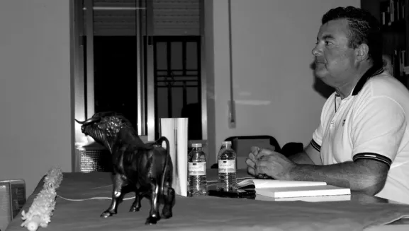 Después de la presentación, el público asistente pudo participar en un ameno y agradable coloquio, además de disfrutar de una bonita velada hablando de toros con quien es una gran hemeroteca de la Tauromaquia española.