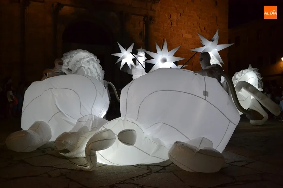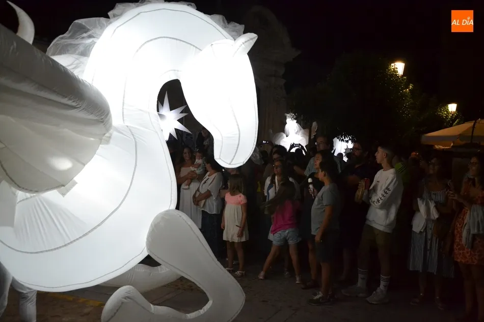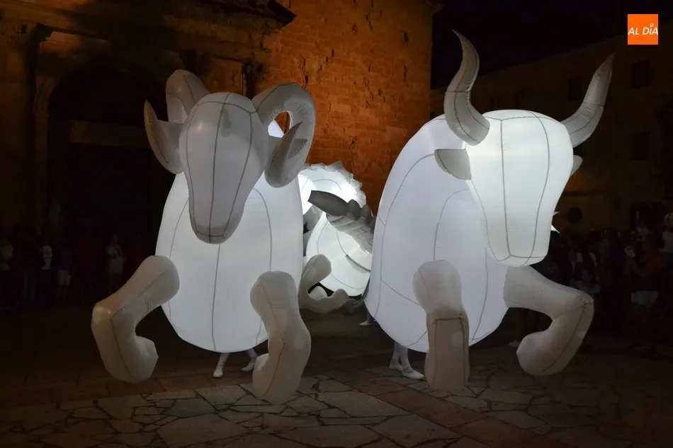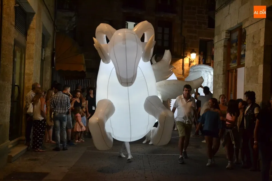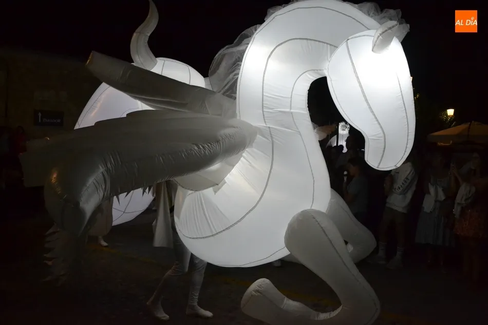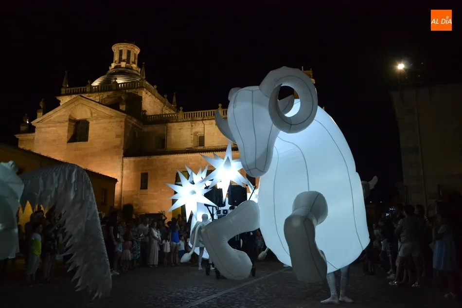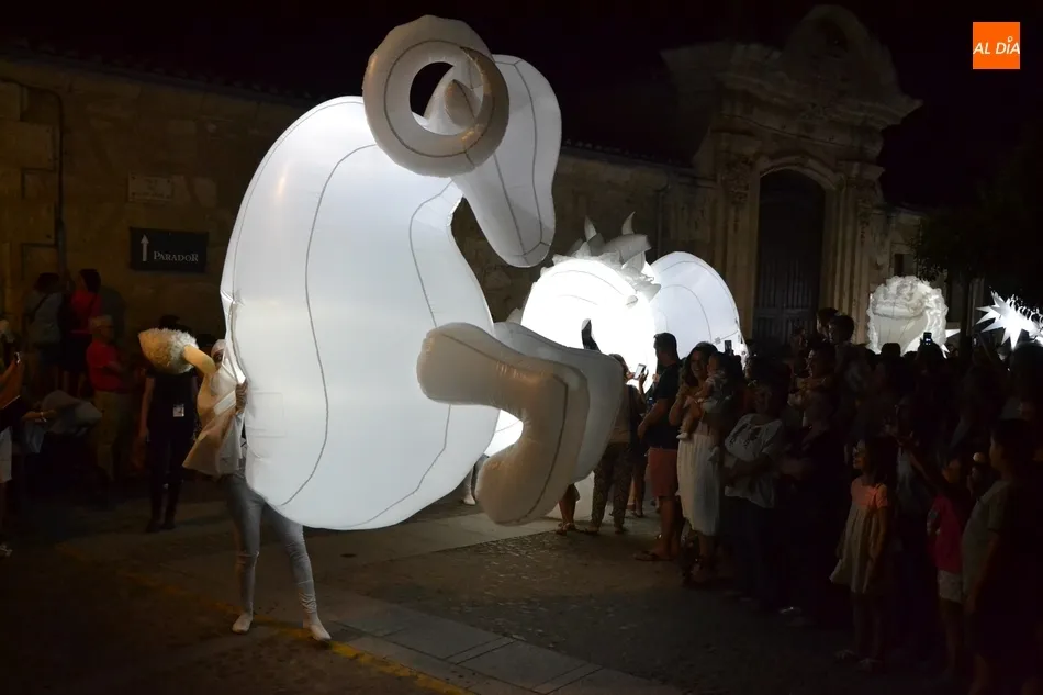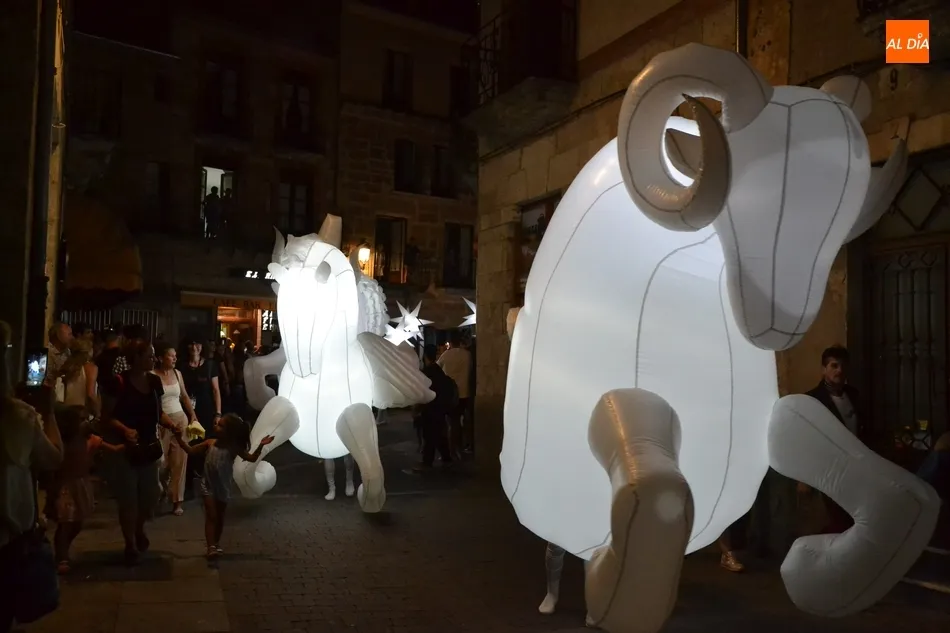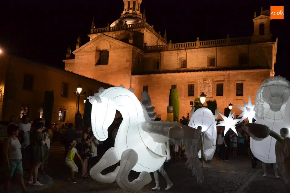 Como se puede entender mejor viendo las imágenes que acompañan este texto, el pasacalles corrió a cargo de unas grandes figuras hinchables que simulaban constelaciones celestes como Tauro, Pegaso o la Osa Mayor, fácilmente reconocibles por buena parte de los cientos y cientos de espectadores que siguieron el transcurso del mismo, y que aprovecharon para desenfundar sus móviles y sacar fotos o grabar vídeos de los cuerpos.