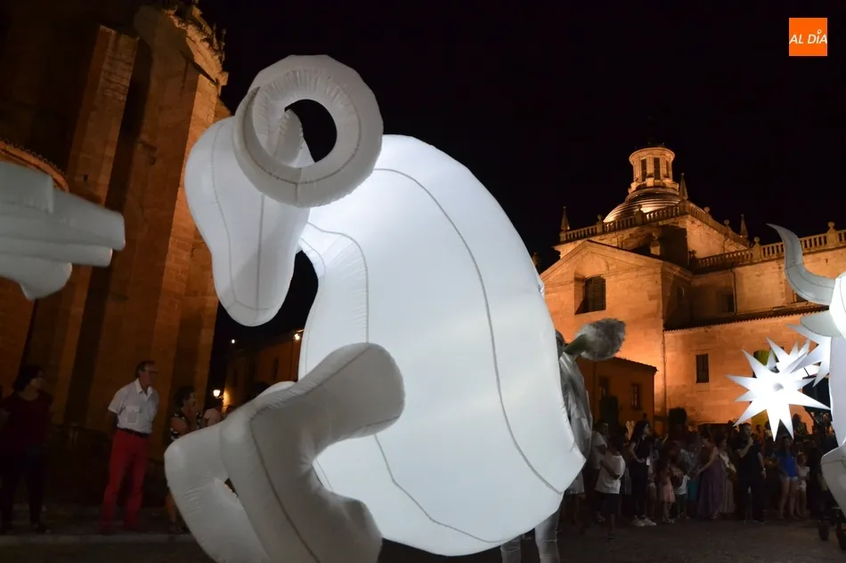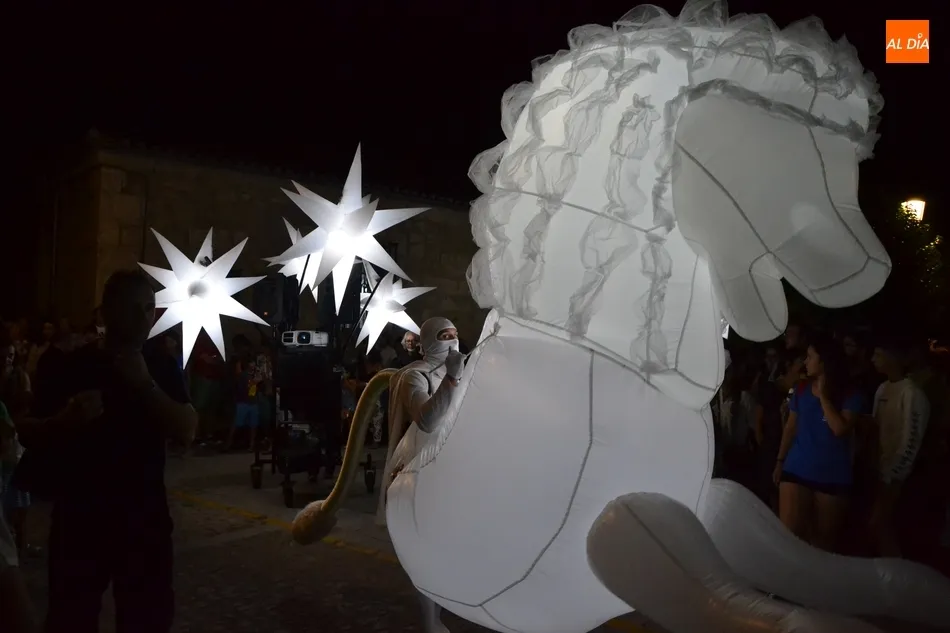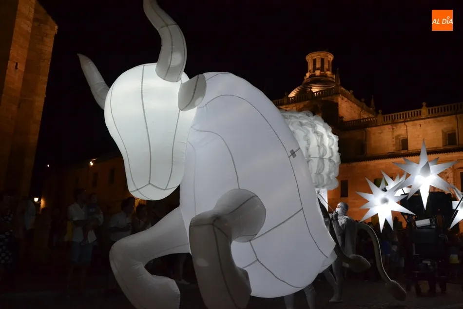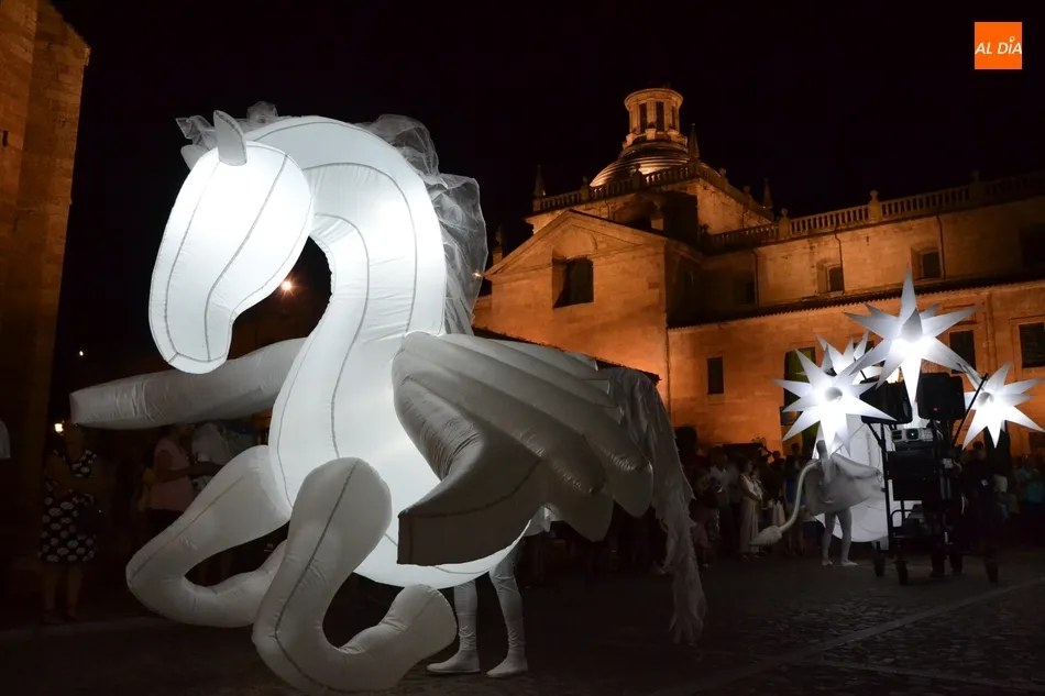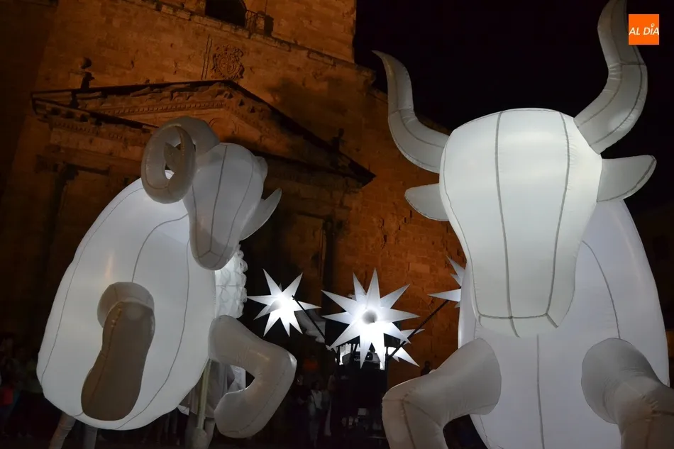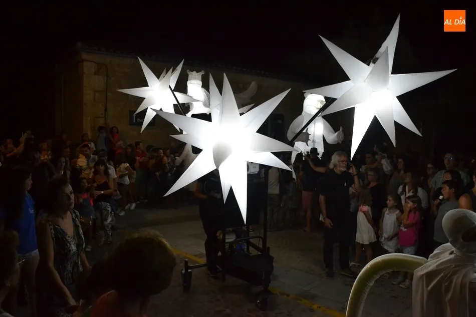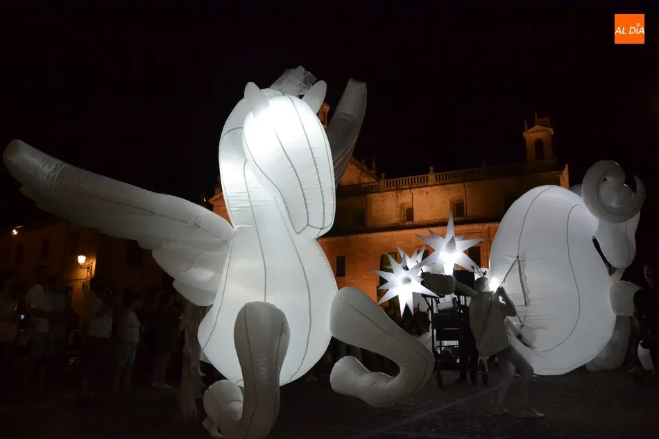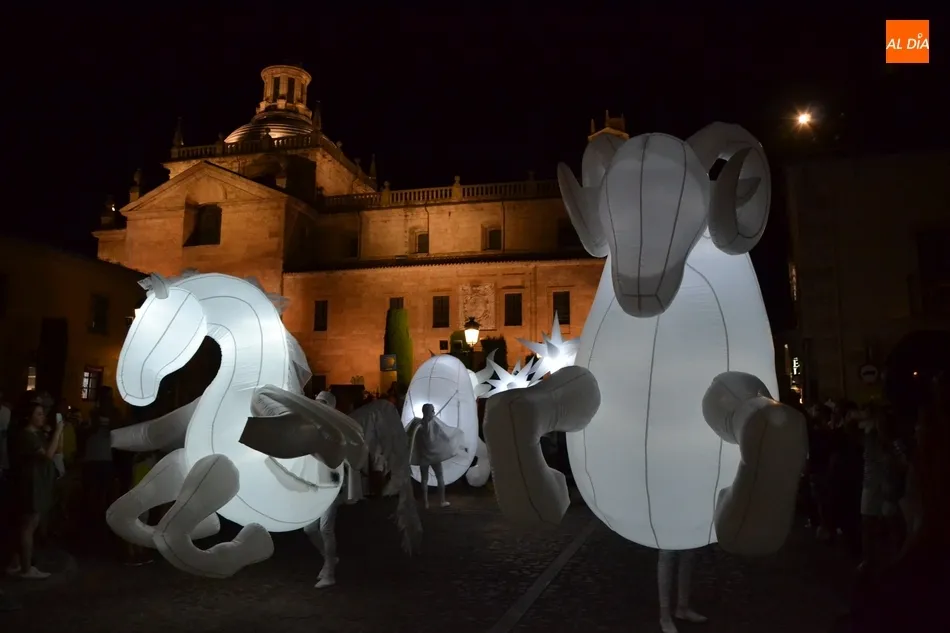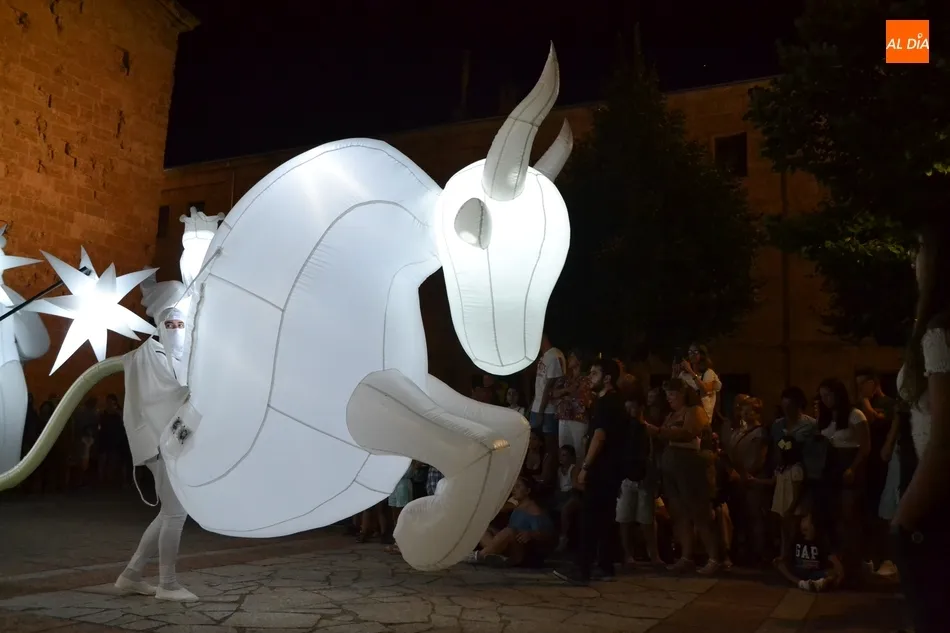 Como se puede entender mejor viendo las imágenes que acompañan este texto, el pasacalles corrió a cargo de unas grandes figuras hinchables que simulaban constelaciones celestes como Tauro, Pegaso o la Osa Mayor, fácilmente reconocibles por buena parte de los cientos y cientos de espectadores que siguieron el transcurso del mismo, y que aprovecharon para desenfundar sus móviles y sacar fotos o grabar vídeos de los cuerpos.