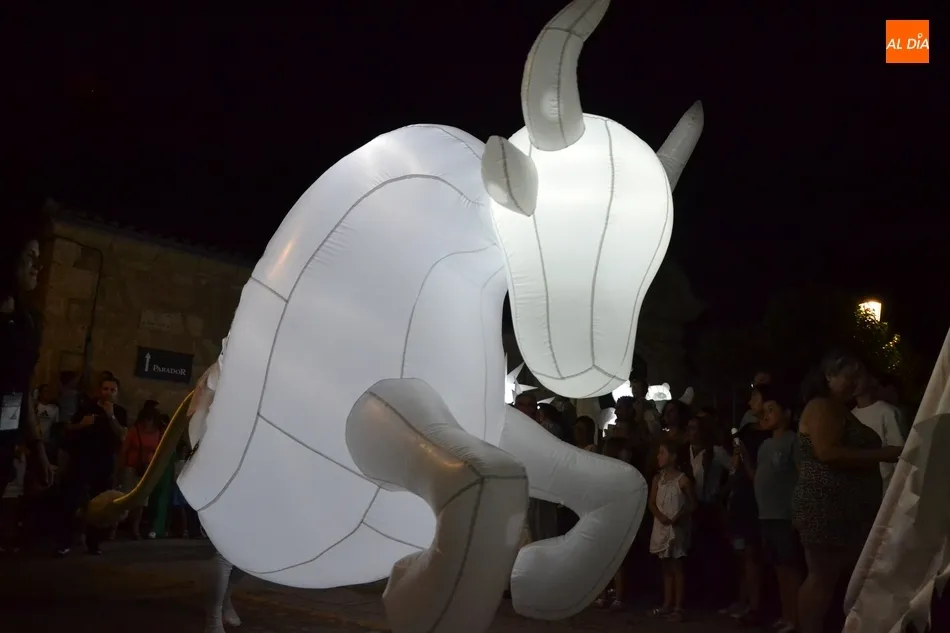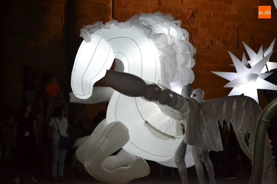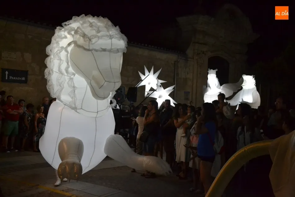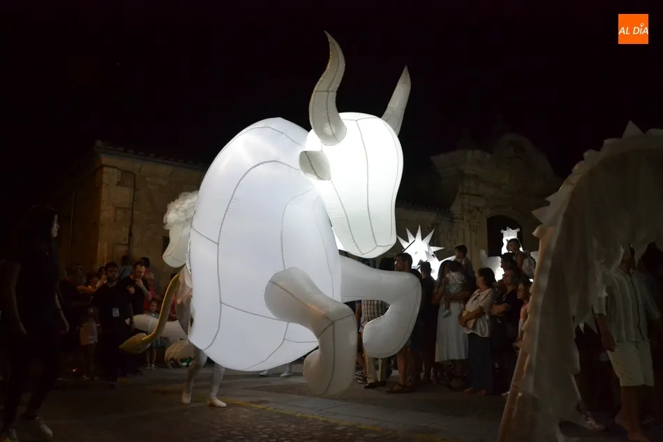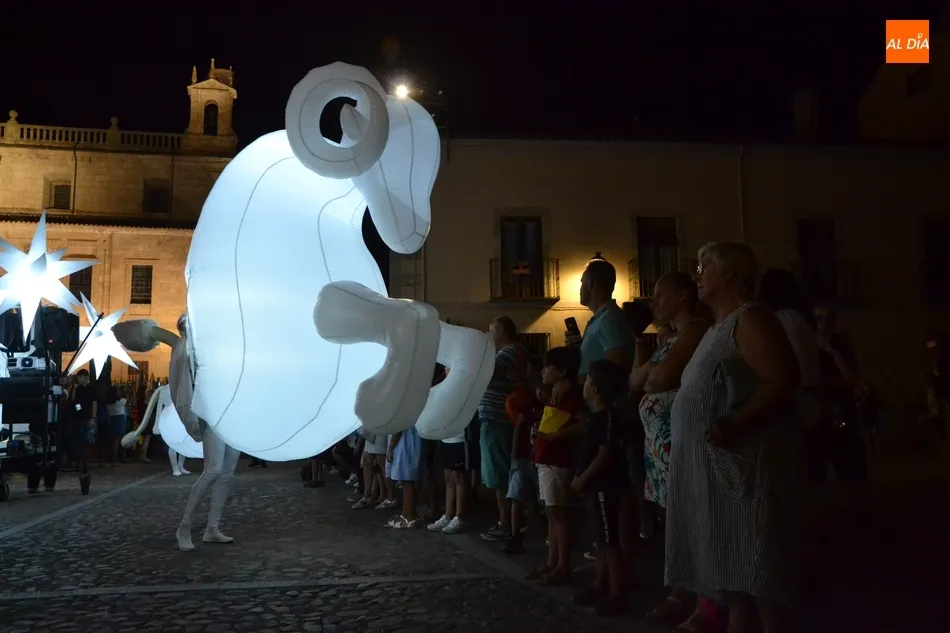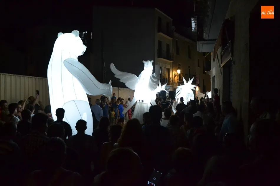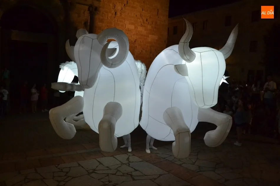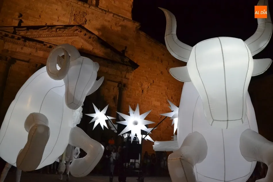 Como se puede entender mejor viendo las imágenes que acompañan este texto, el pasacalles corrió a cargo de unas grandes figuras hinchables que simulaban constelaciones celestes como Tauro, Pegaso o la Osa Mayor, fácilmente reconocibles por buena parte de los cientos y cientos de espectadores que siguieron el transcurso del mismo, y que aprovecharon para desenfundar sus móviles y sacar fotos o grabar vídeos de los cuerpos.
