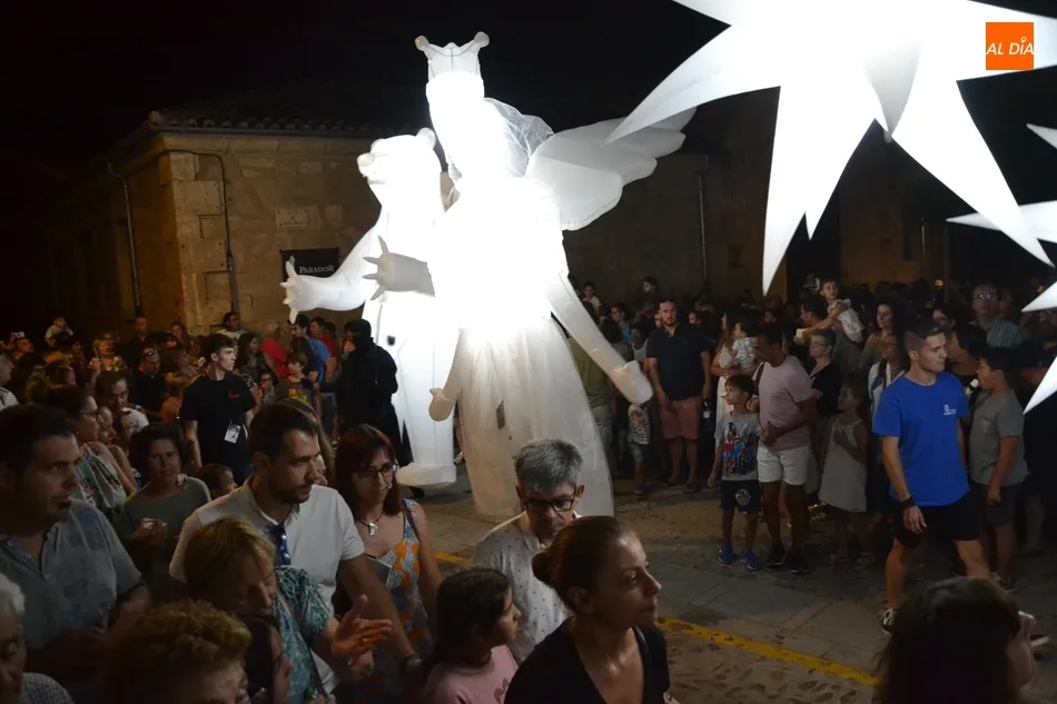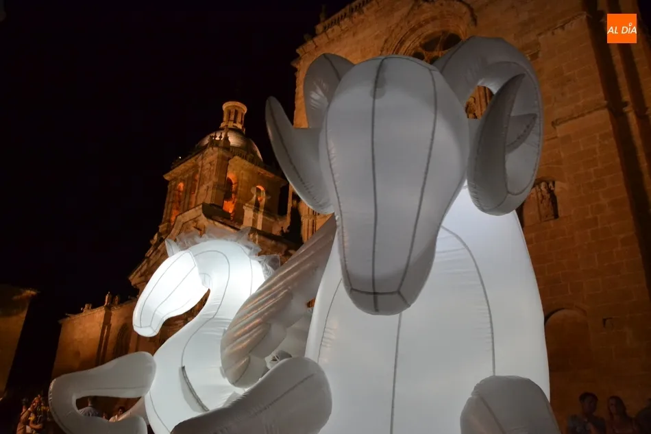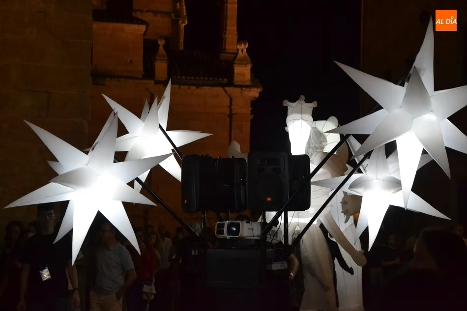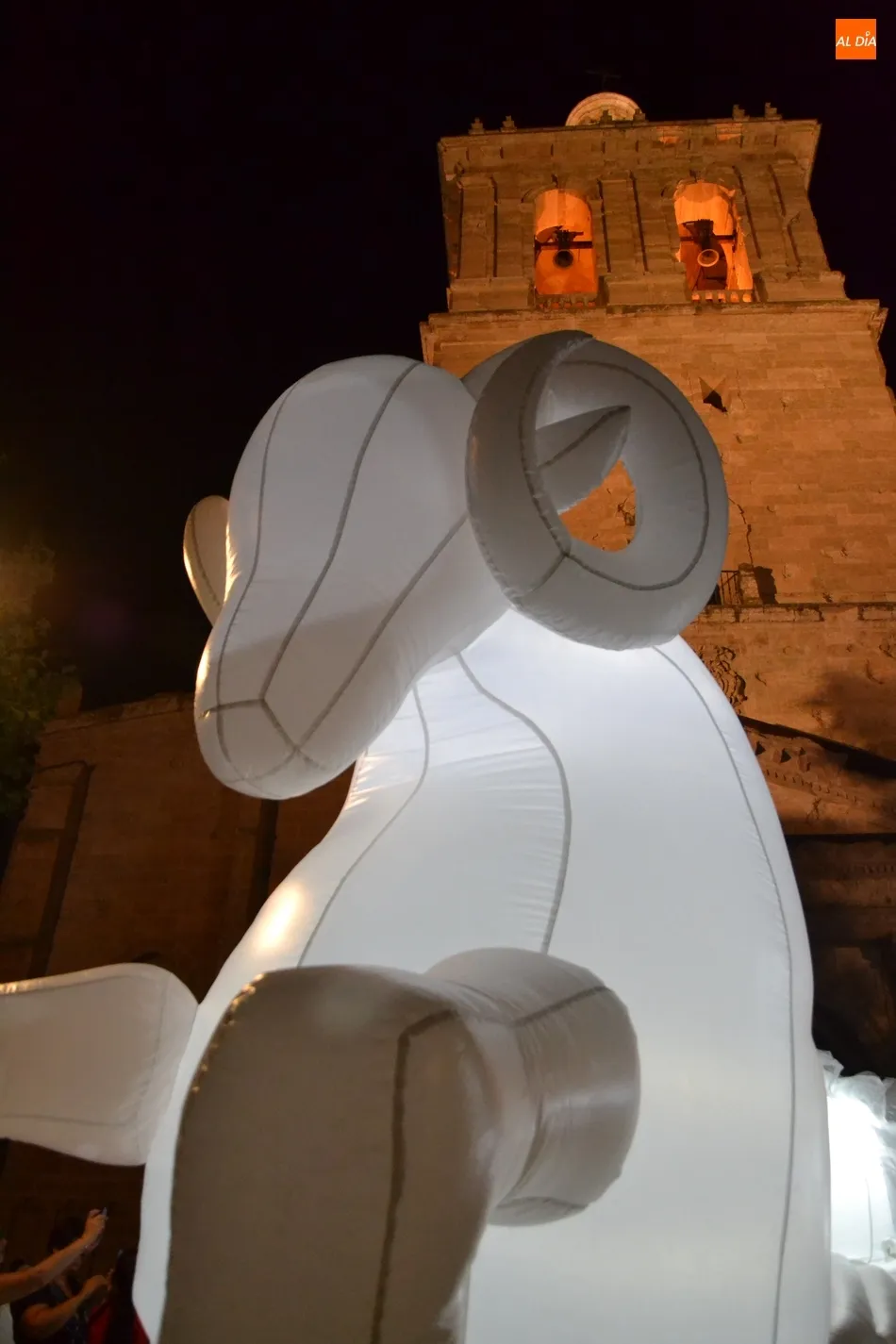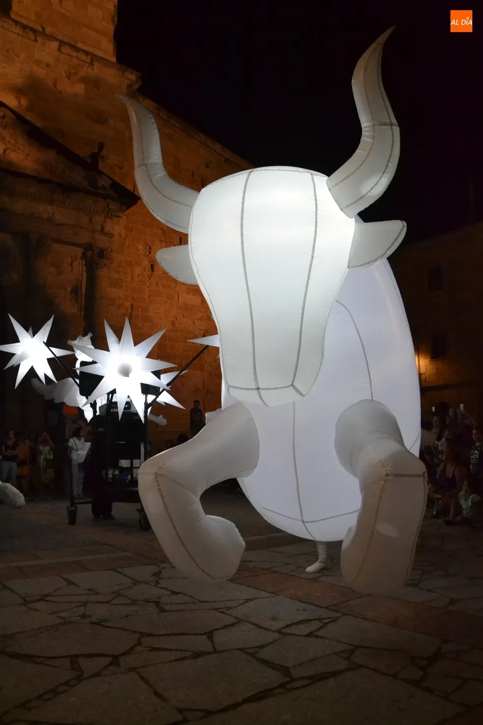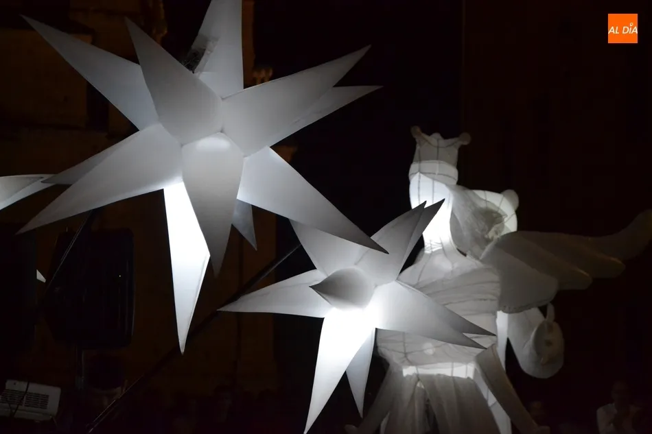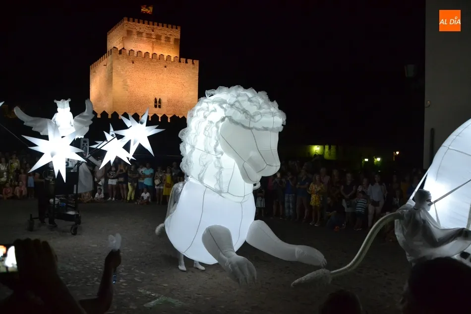Como se puede entender mejor viendo las imágenes que acompañan este texto, el pasacalles corrió a cargo de unas grandes figuras hinchables que simulaban constelaciones celestes como Tauro, Pegaso o la Osa Mayor, fácilmente reconocibles por buena parte de los cientos y cientos de espectadores que siguieron el transcurso del mismo, y que aprovecharon para desenfundar sus móviles y sacar fotos o grabar vídeos de los cuerpos.