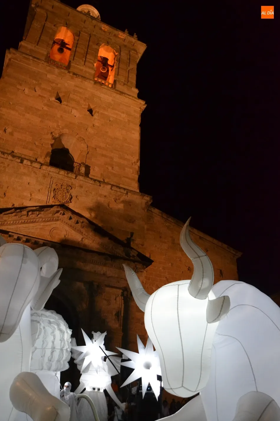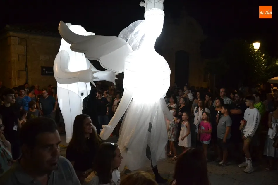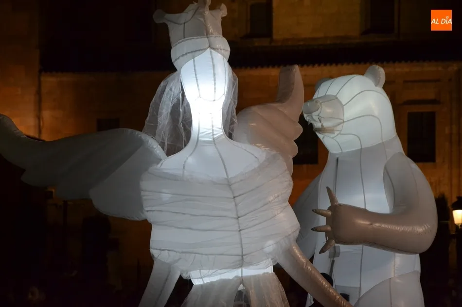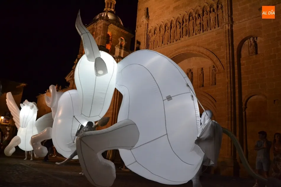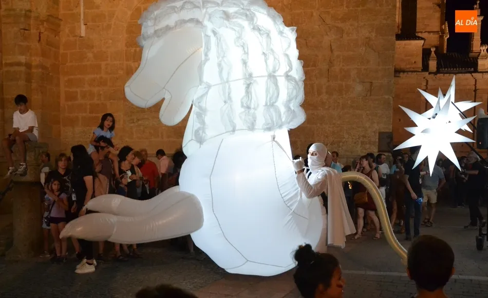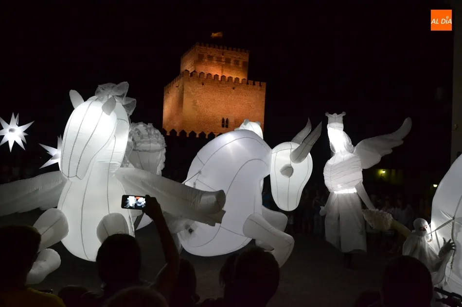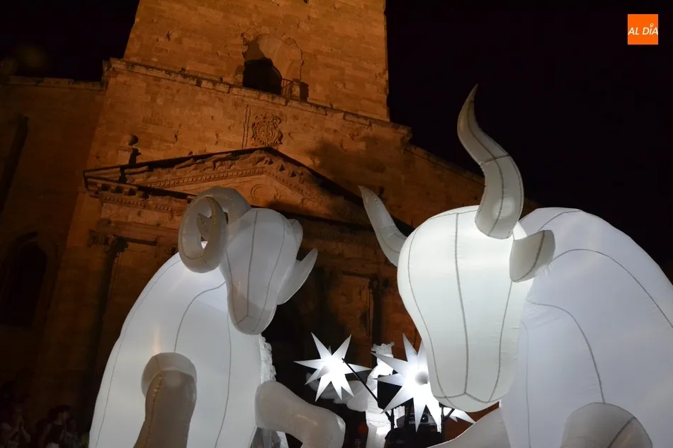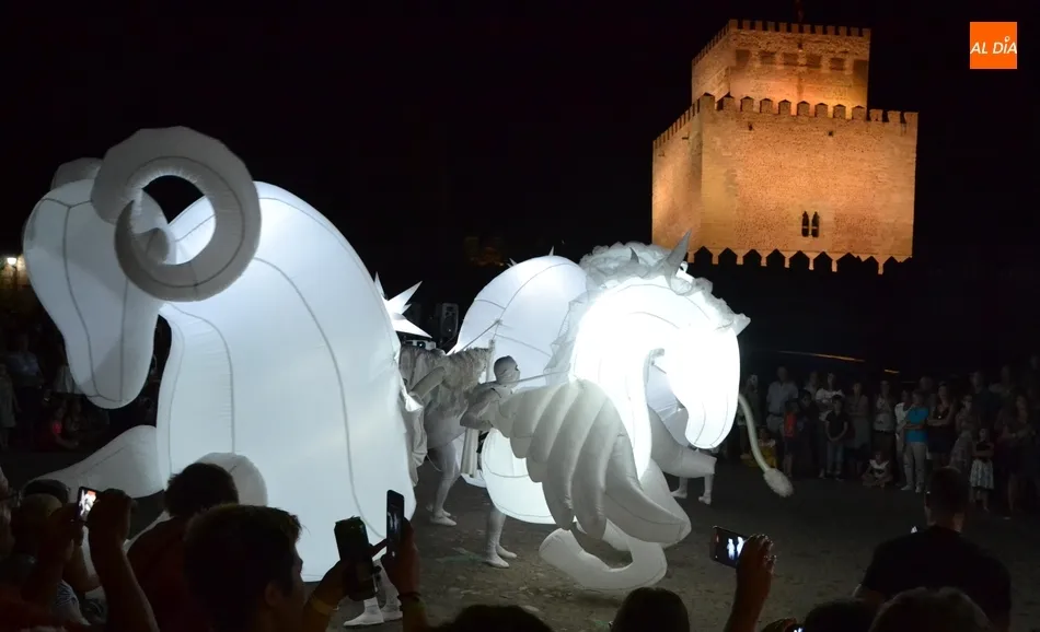 Como se puede entender mejor viendo las imágenes que acompañan este texto, el pasacalles corrió a cargo de unas grandes figuras hinchables que simulaban constelaciones celestes como Tauro, Pegaso o la Osa Mayor, fácilmente reconocibles por buena parte de los cientos y cientos de espectadores que siguieron el transcurso del mismo, y que aprovecharon para desenfundar sus móviles y sacar fotos o grabar vídeos de los cuerpos.