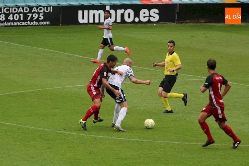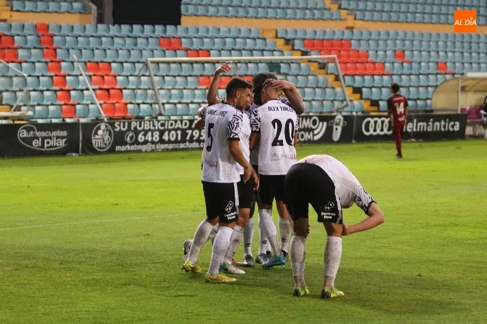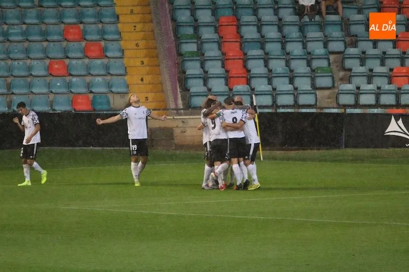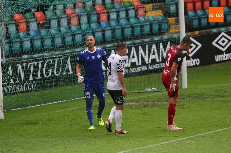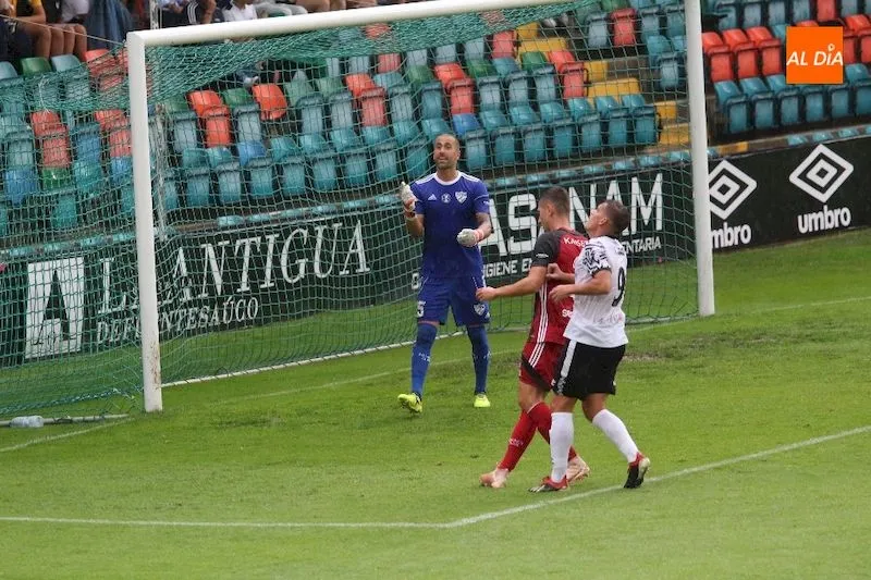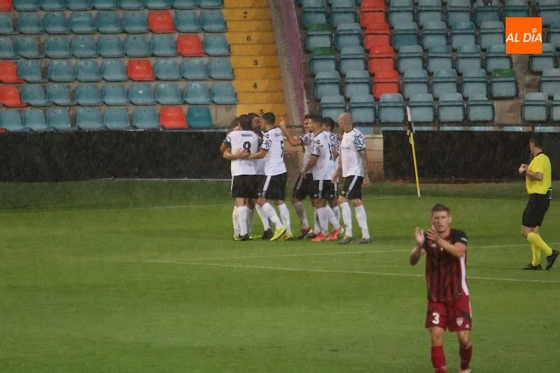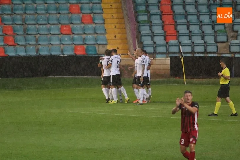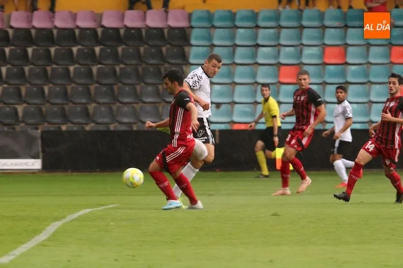 El dominio del equipo del Helmántico fue abrumador bajo la intensa lluvia que cayó durante gran parte del duelo sobre el tapete verde y fruto de ello fue el gol de Antonio Amaro para abrir la lata en el minuto 16. El capitán se encontró un balón muerto dentro del área y fusiló a Aulestia para poner el 1-0 en el marcador y hacer justicia.