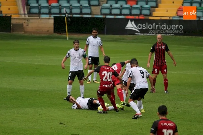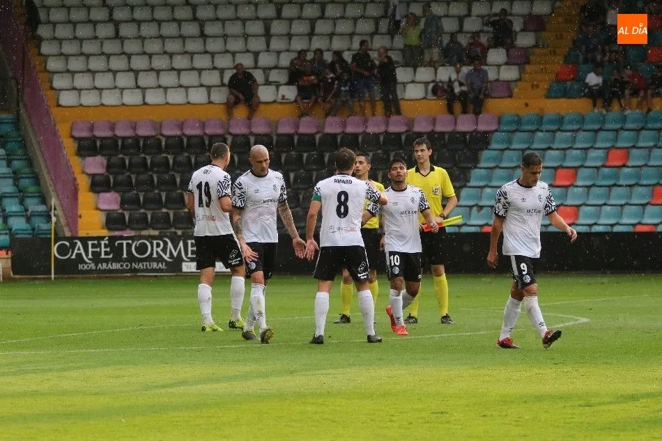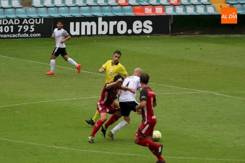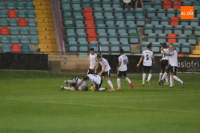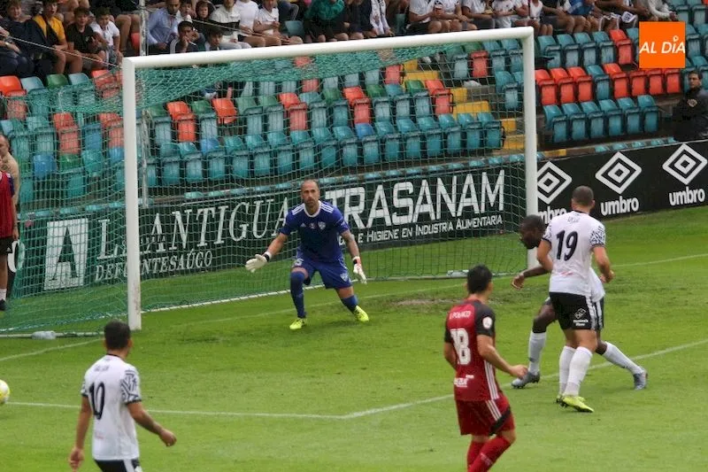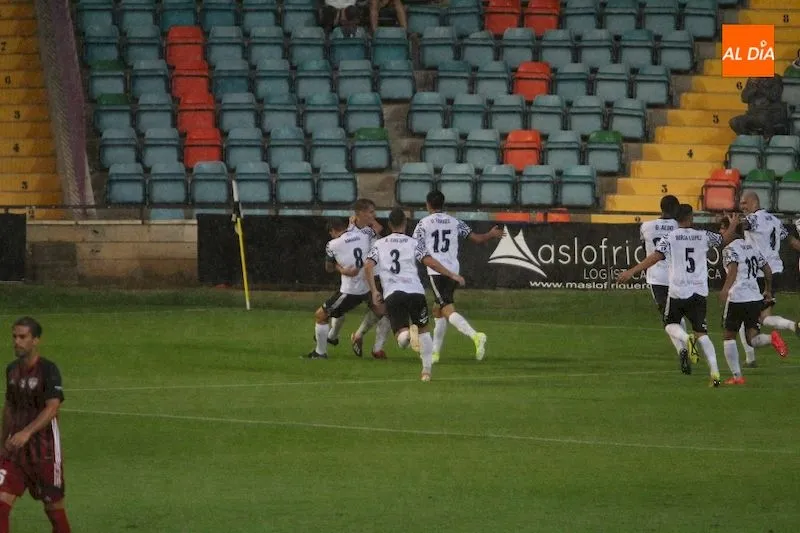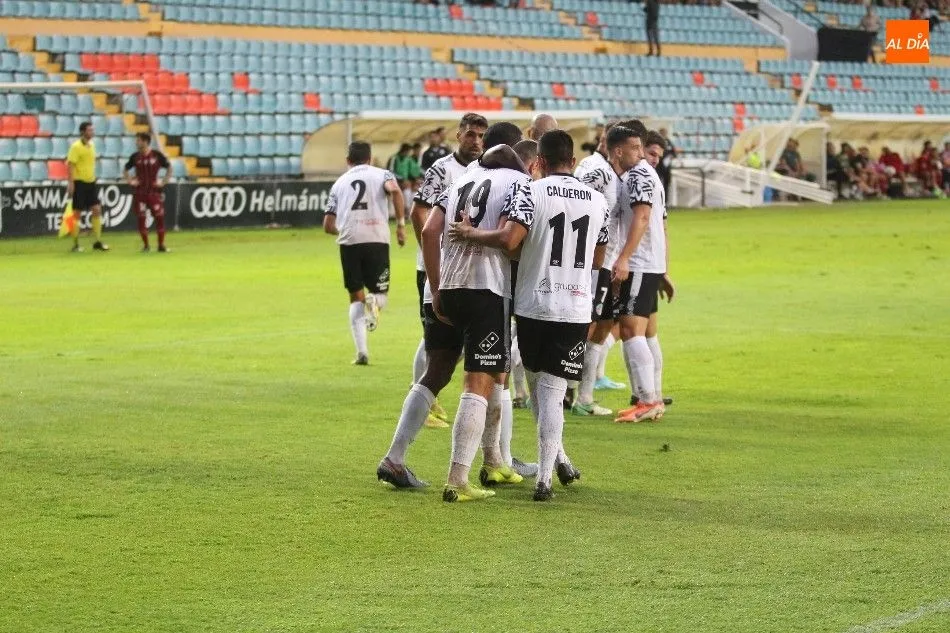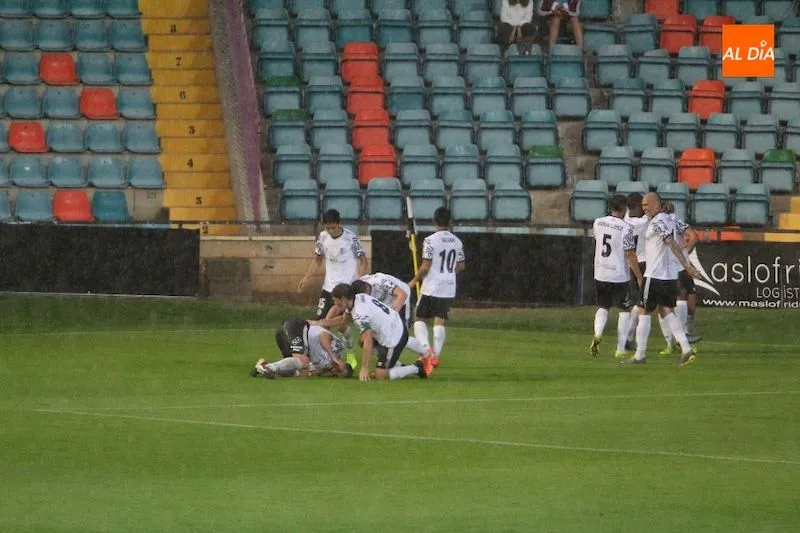 El dominio del equipo del Helmántico fue abrumador bajo la intensa lluvia que cayó durante gran parte del duelo sobre el tapete verde y fruto de ello fue el gol de Antonio Amaro para abrir la lata en el minuto 16. El capitán se encontró un balón muerto dentro del área y fusiló a Aulestia para poner el 1-0 en el marcador y hacer justicia.