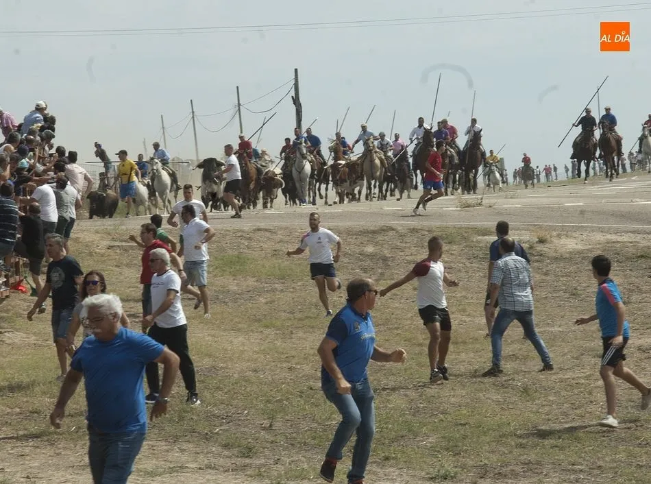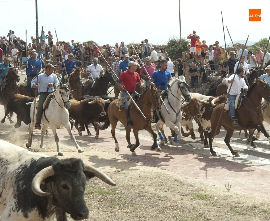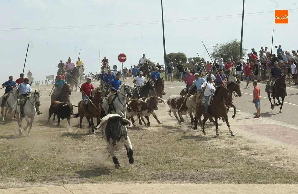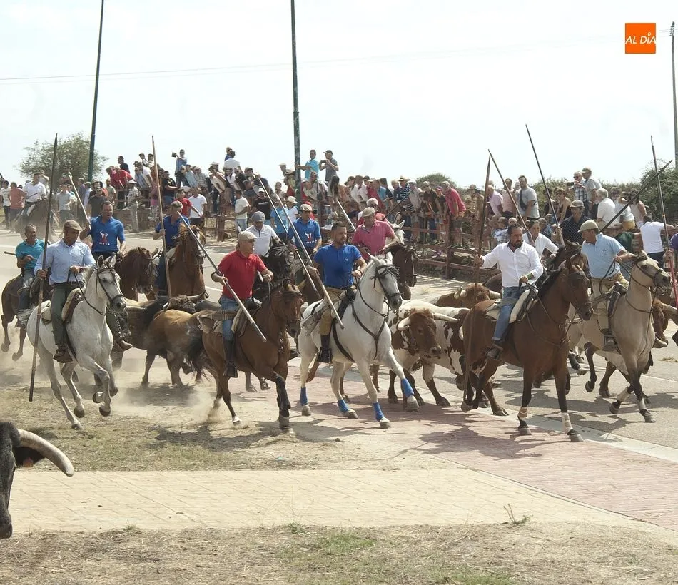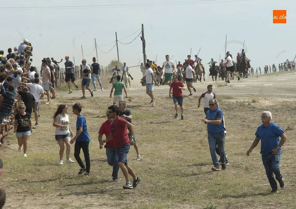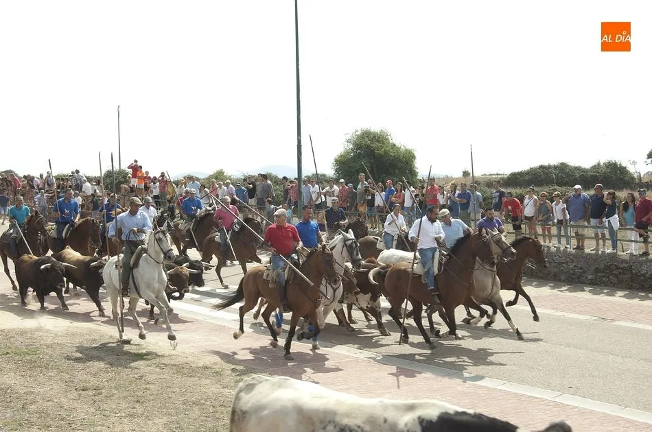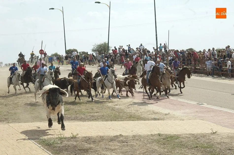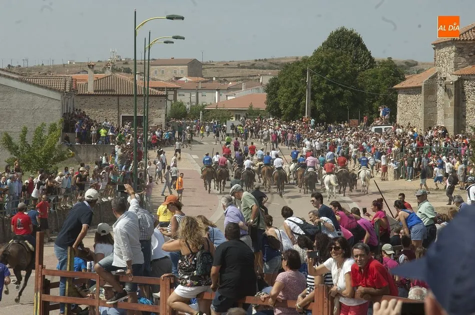 Tras el movido y accidentado Toro del Aguardiente que vivió Fuenteguinaldo a primera hora de la mañana dominical (que dejó dos heridos por asta de toro), miles y miles de personas se fueron acercando hasta el municipio para disfrutar al mediodía del tercero de los encierros a caballo de las fiestas.