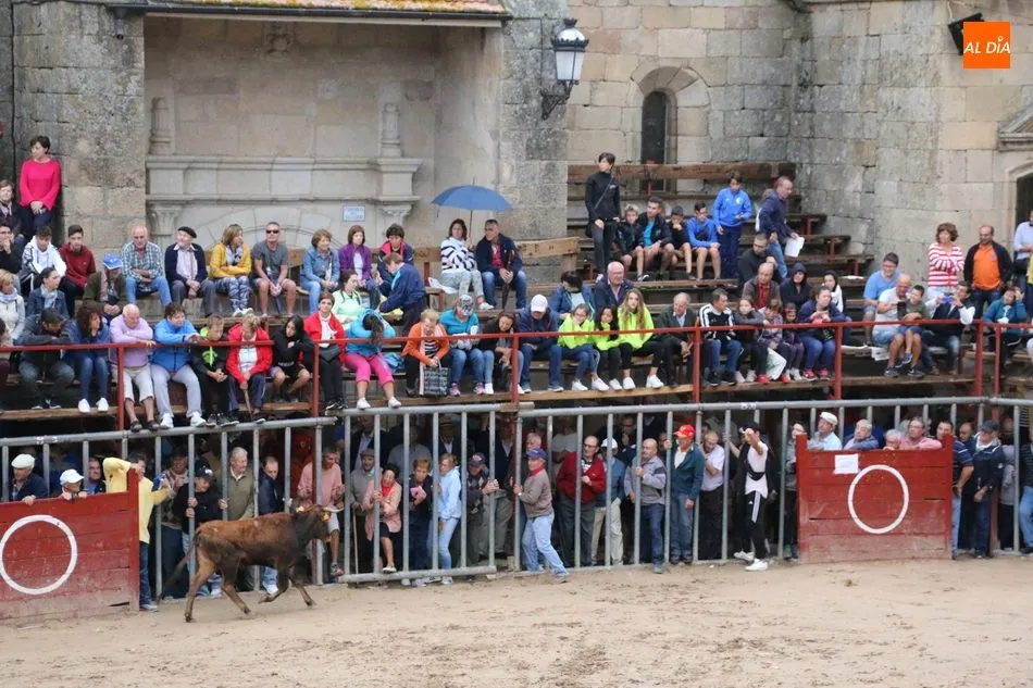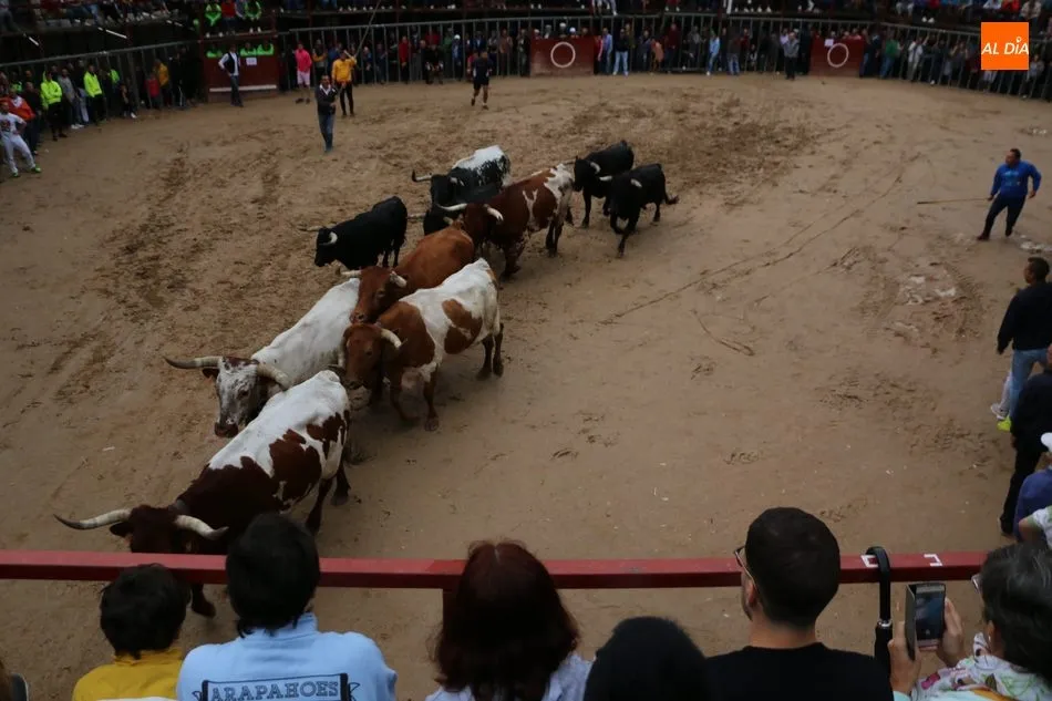 Ya en la plaza, se mantuvo por unos minutos a la manada para que el público pudiera observar los novillos que serán lidiados en la tarde por los novilleros José Manuel Serrano y Pablo Jaramillo, este último de la Escuela de Tauromaquia de Salamanca.