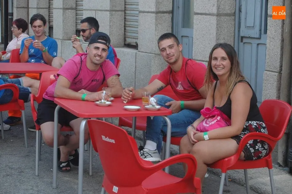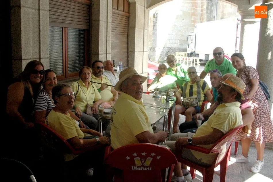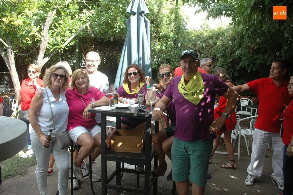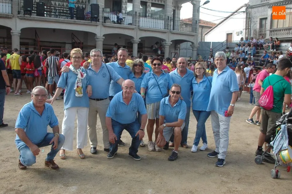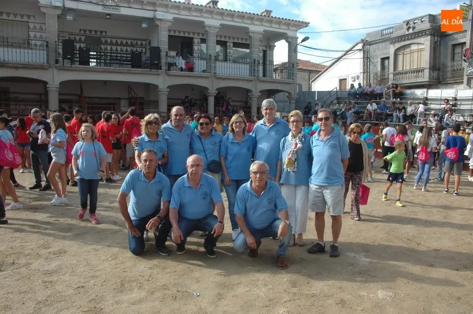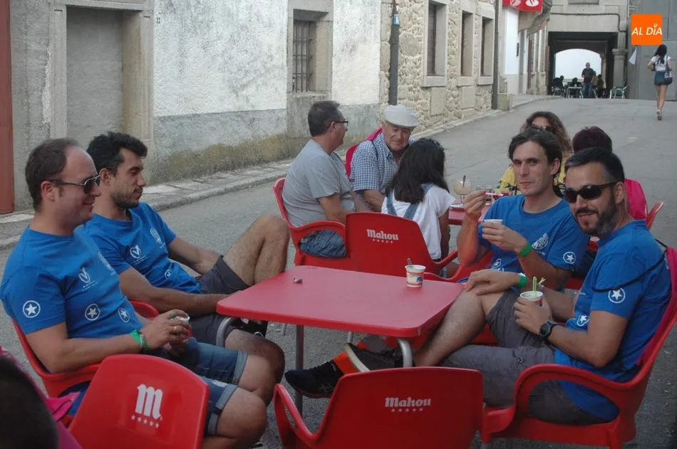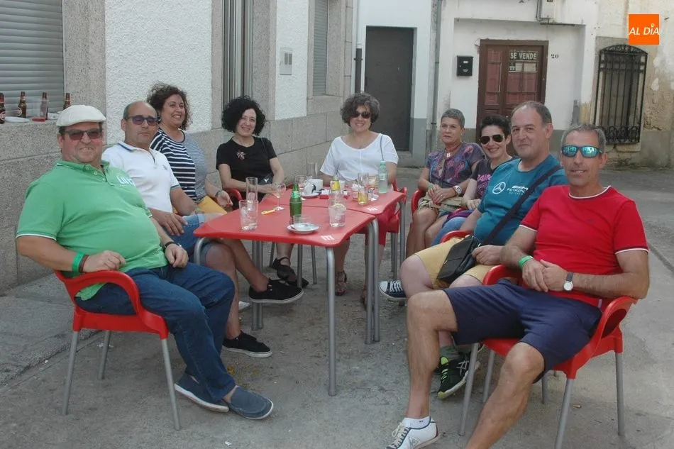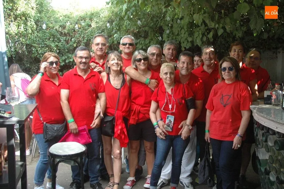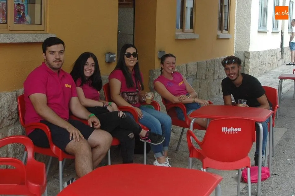 La plaza de Villavieja de Yeltes se convirtió este lunes en un mosaico de colores durante la concentración de peñas protagonistas del lanzamiento del chupinazo oficializado por varios miembros de la Corporación municipal.