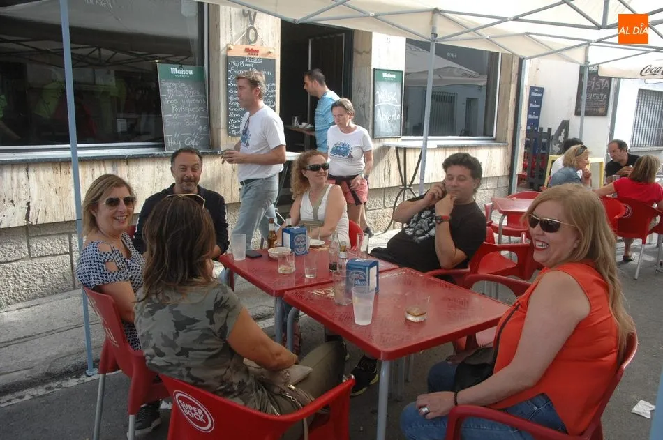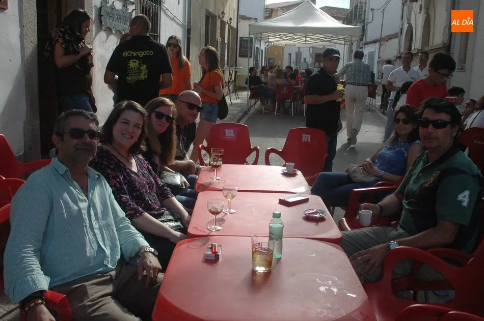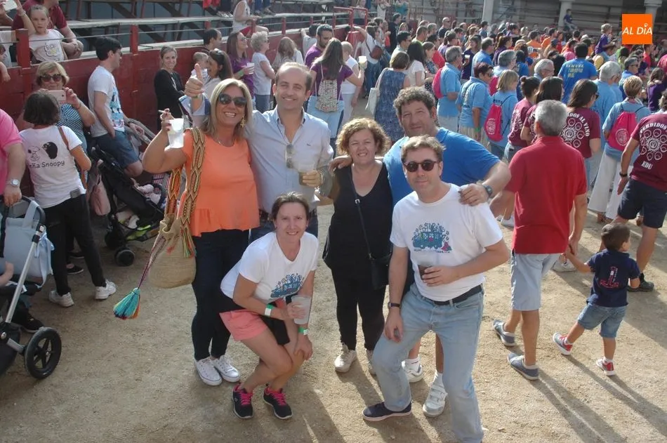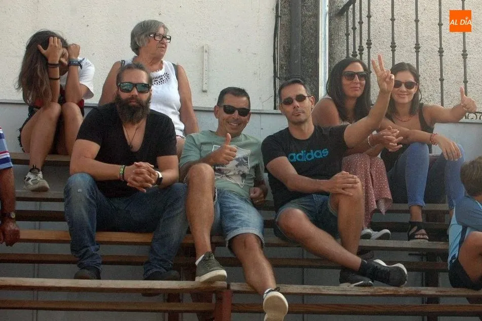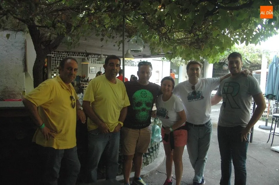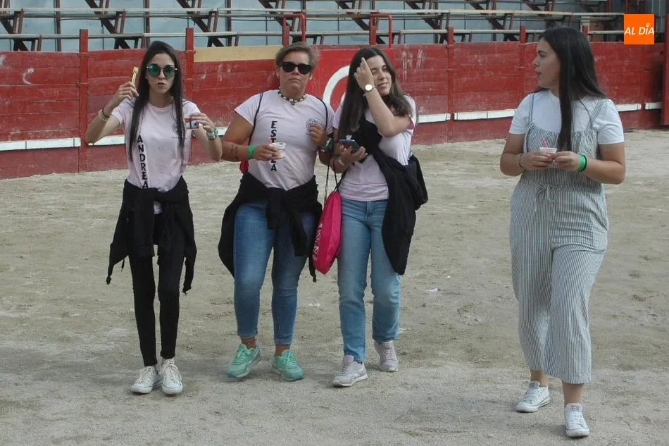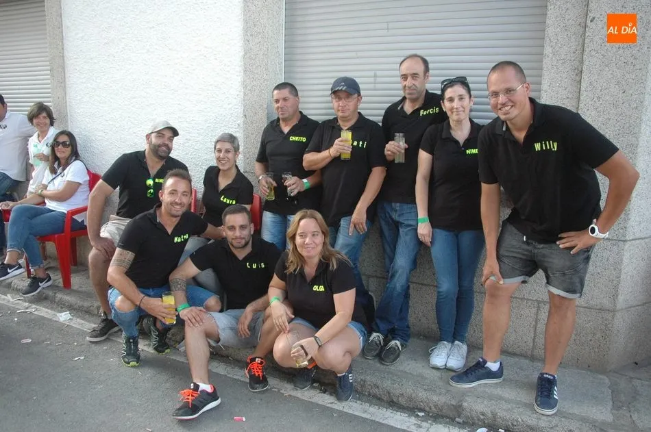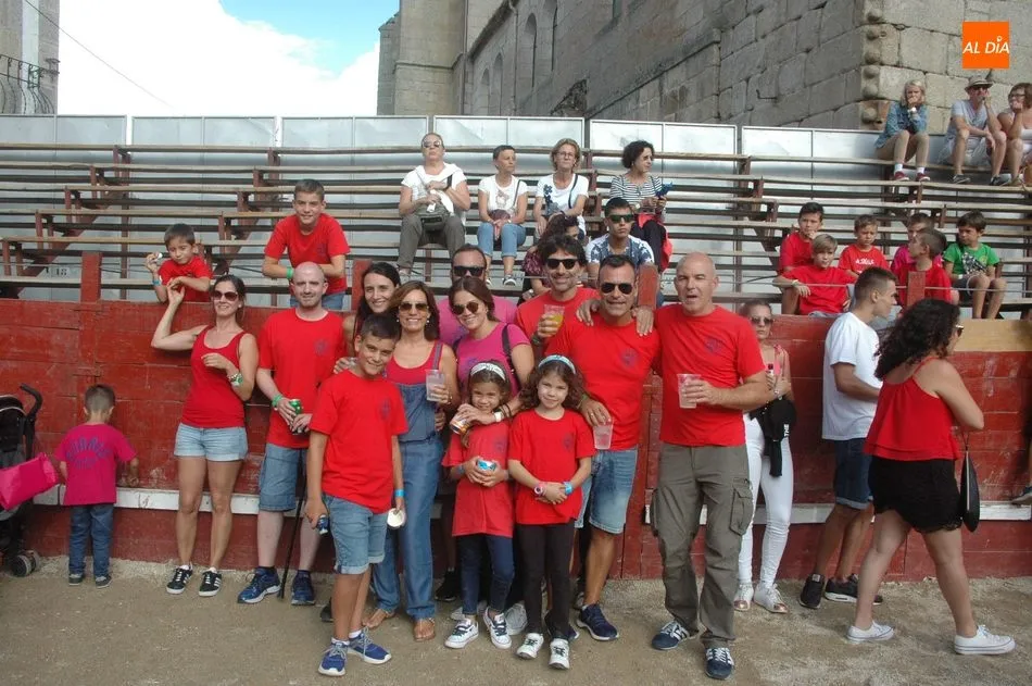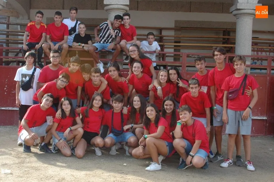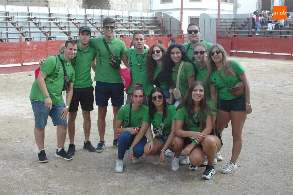 La plaza de Villavieja de Yeltes se convirtió este lunes en un mosaico de colores durante la concentración de peñas protagonistas del lanzamiento del chupinazo oficializado por varios miembros de la Corporación municipal.