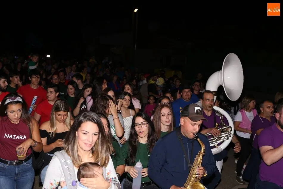 En pocos sitios se respira tanto ambiente festivo como en el desfile de peñas de El Pedroso de la Armuña. Cada año, cientos de personas de todas las edades se echan a las calles de la localidad para celebrar con la charanga el inicio de las fiestas patronales. Así ha vuelto a ocurrir en la noche de este lunes.