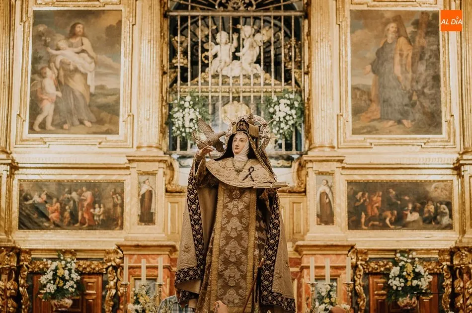 La iglesia de la Anunciación se llenó de albenses y visitantes para honrar a Santa Teresa, patrona de la localidad. A esta ceremonia religiosa ha asistido la subdelegada del gobierno de Salamanca, Doña Encarnación Pérez, la alcaldesa de Alba de Tormes, Concepción Miguélez, que ha estado acompañada por varios componentes de la Corporación Municipal. También ha destacado la presencia de los diputados provinciales Jesús Luis de San Antonio, Eva Picado y Antonio Luís Sánchez entre otras autoridades civiles y religiosas.