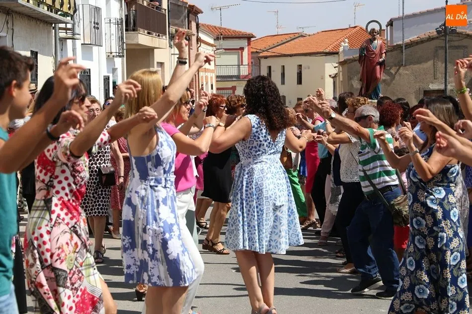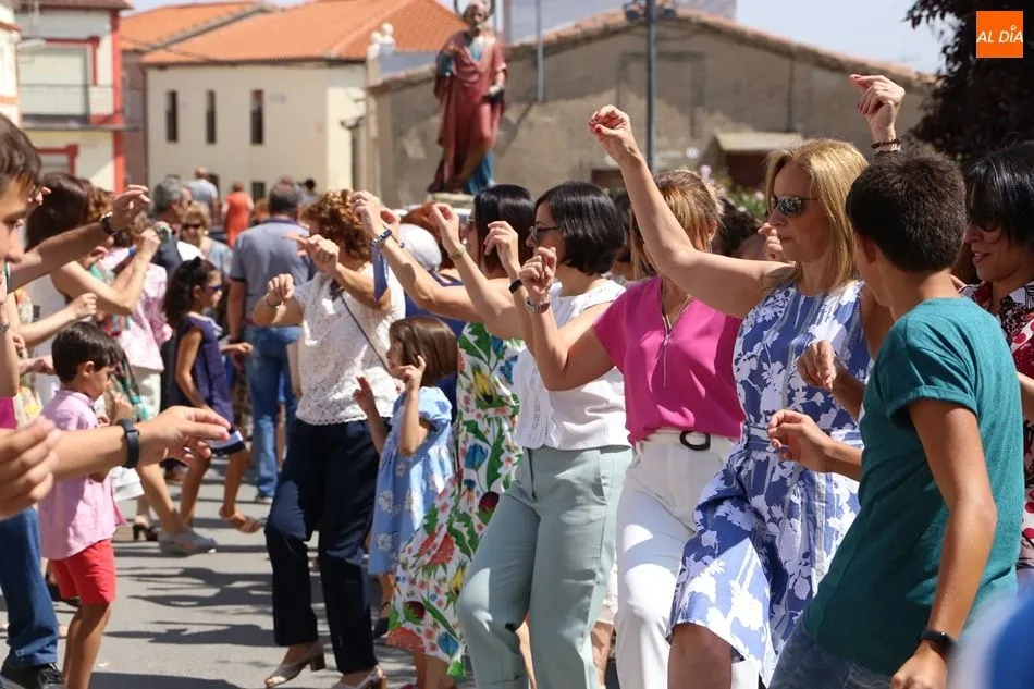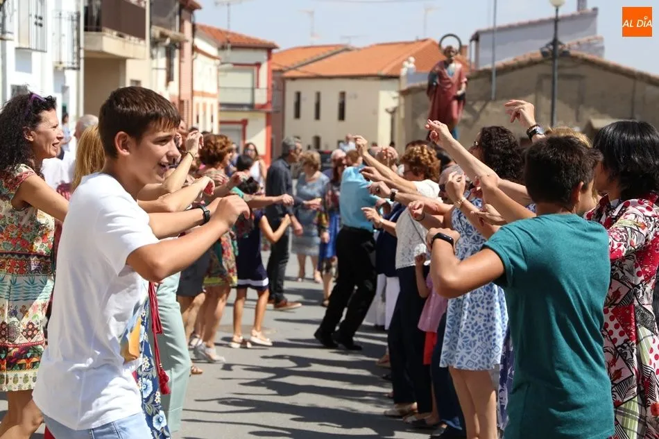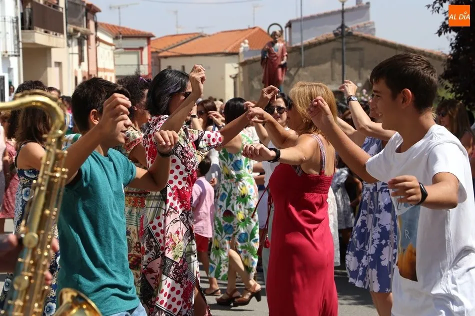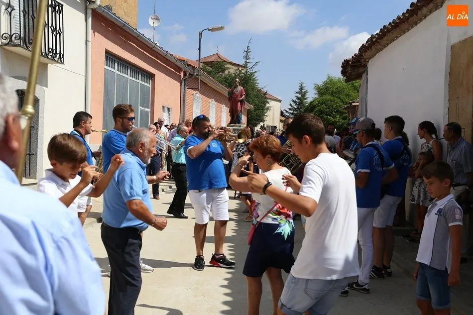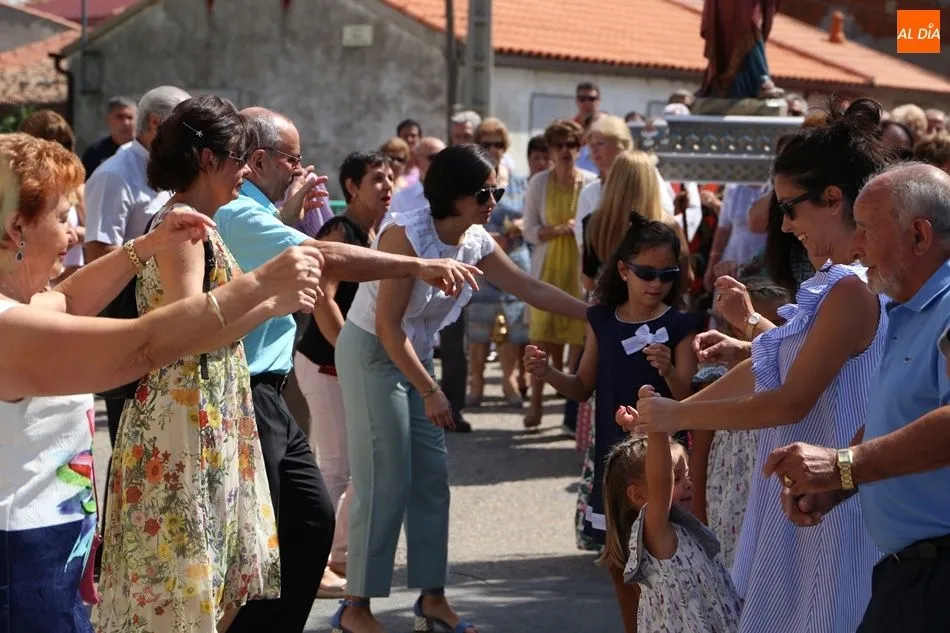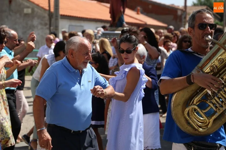 La imagen de San Pedro fue portada a hombros por los vecinos, que se iban turnando en grupos de cuatro. Al frente marchaba la charanga El Meneíto, que en varias ocasiones se detuvo para tocar jotas que bailaron con ganas pequeños y mayores.