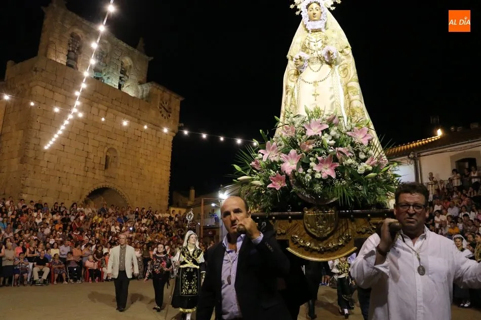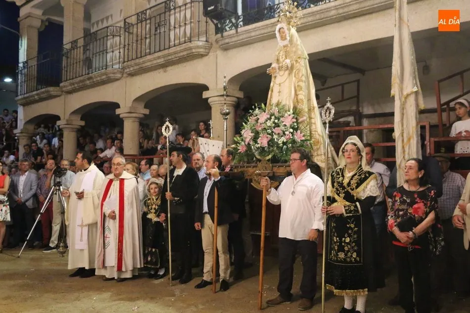 Recibida con honores de Reina, los vecinos lanzaron sus voces al aire para entregar La Salve a su Virgen. La salutación de Andrés Celestino García ensalzaba el fervor de cada villaviejense por su patrona, unas fiestas que viven con total entrega hasta el 31 de agosto, una fecha que marca un antes y un después en la vida de cada vecino de estas tierras bañadas por las aguas milagrosas del Yeltes.
